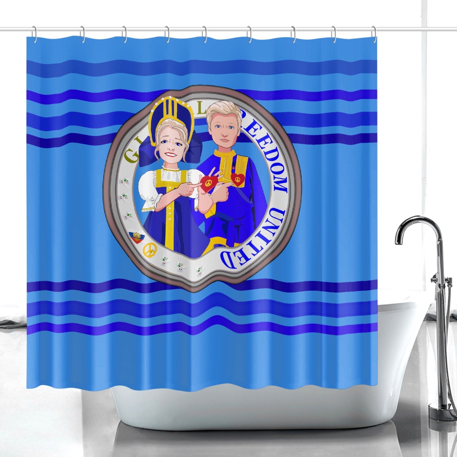 GLOBAL FREEDOM UNITED© Couple Russia Deep Blue - Quick-drying Shower Curtain