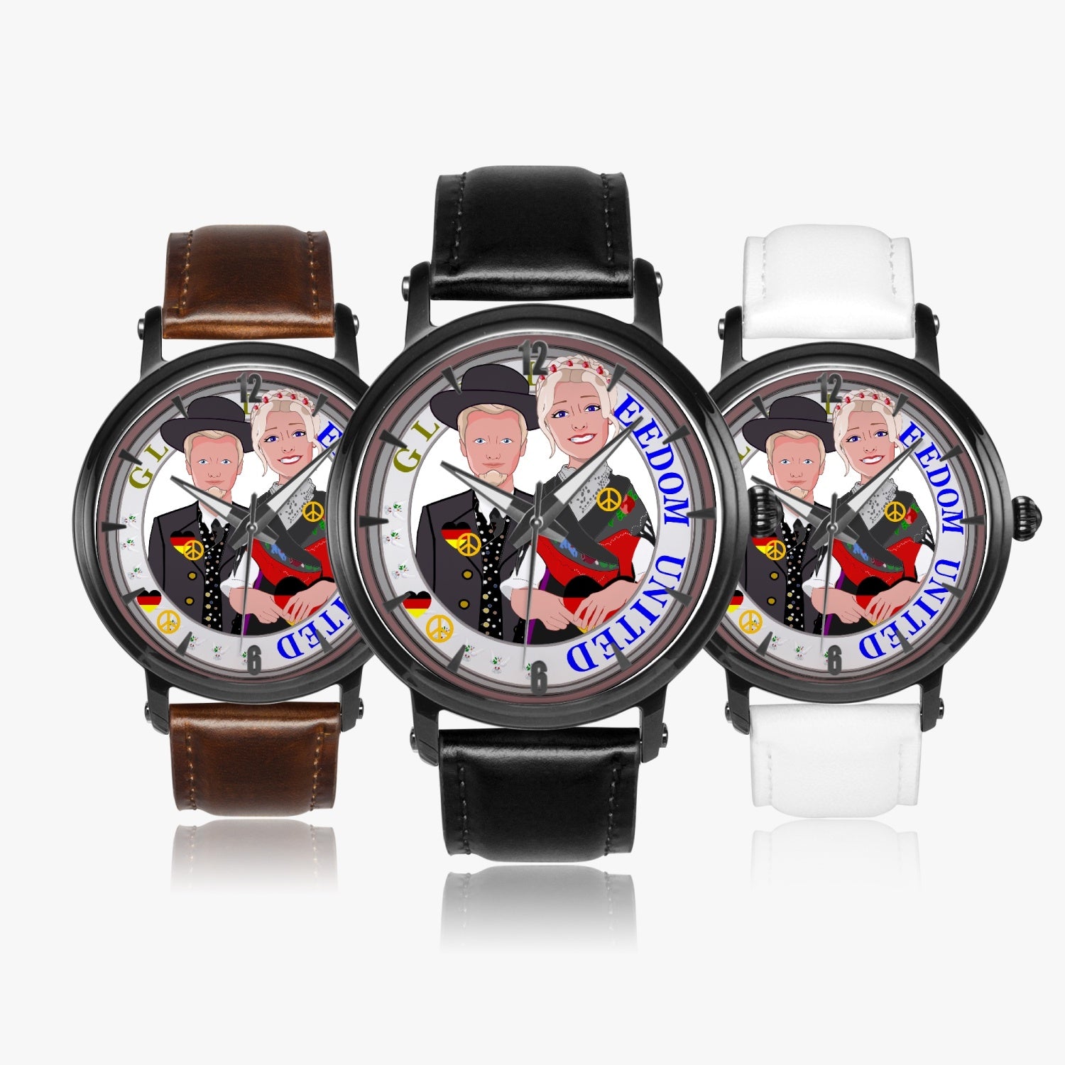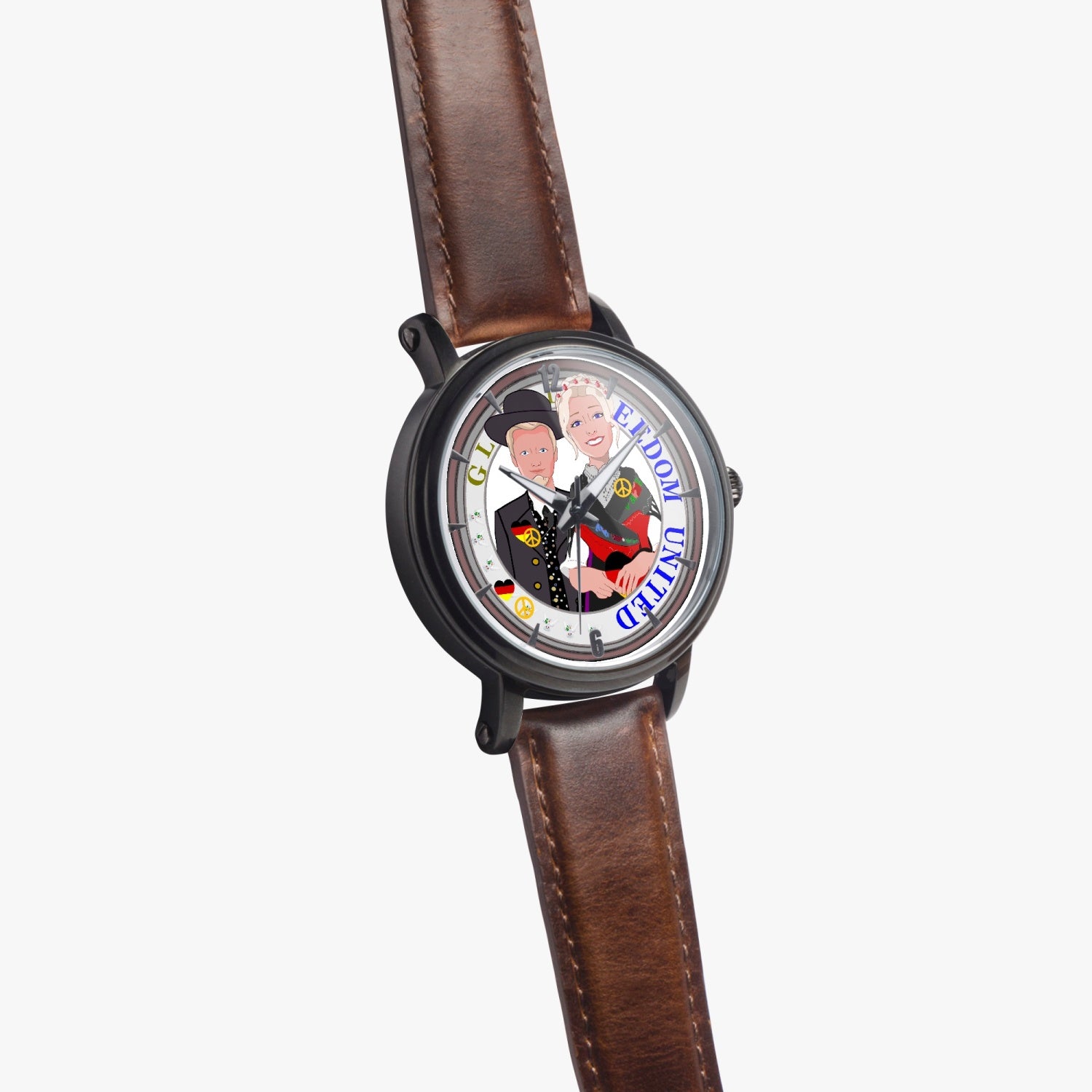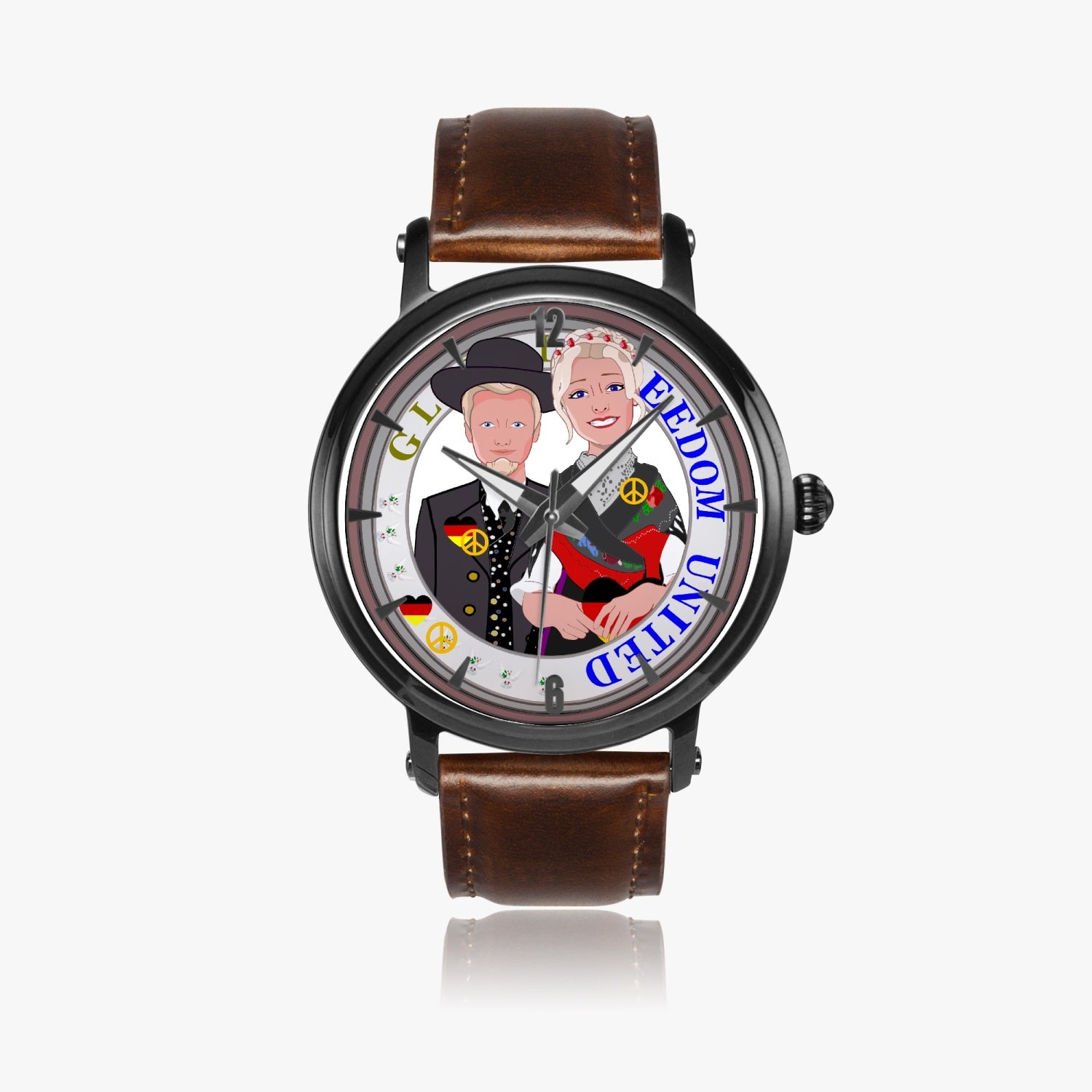 46mm Unisex Automatic Watch(Black) GLOBAL FREEDOM UNITED© COUPLE EDITION GERMANY V1