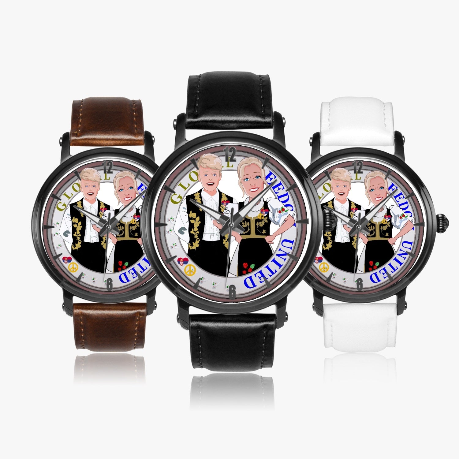 46mm Unisex Automatic Watch(Black) GLOBAL FREEDOM UNITED© COUPLE EDITION SERBIA BLACK