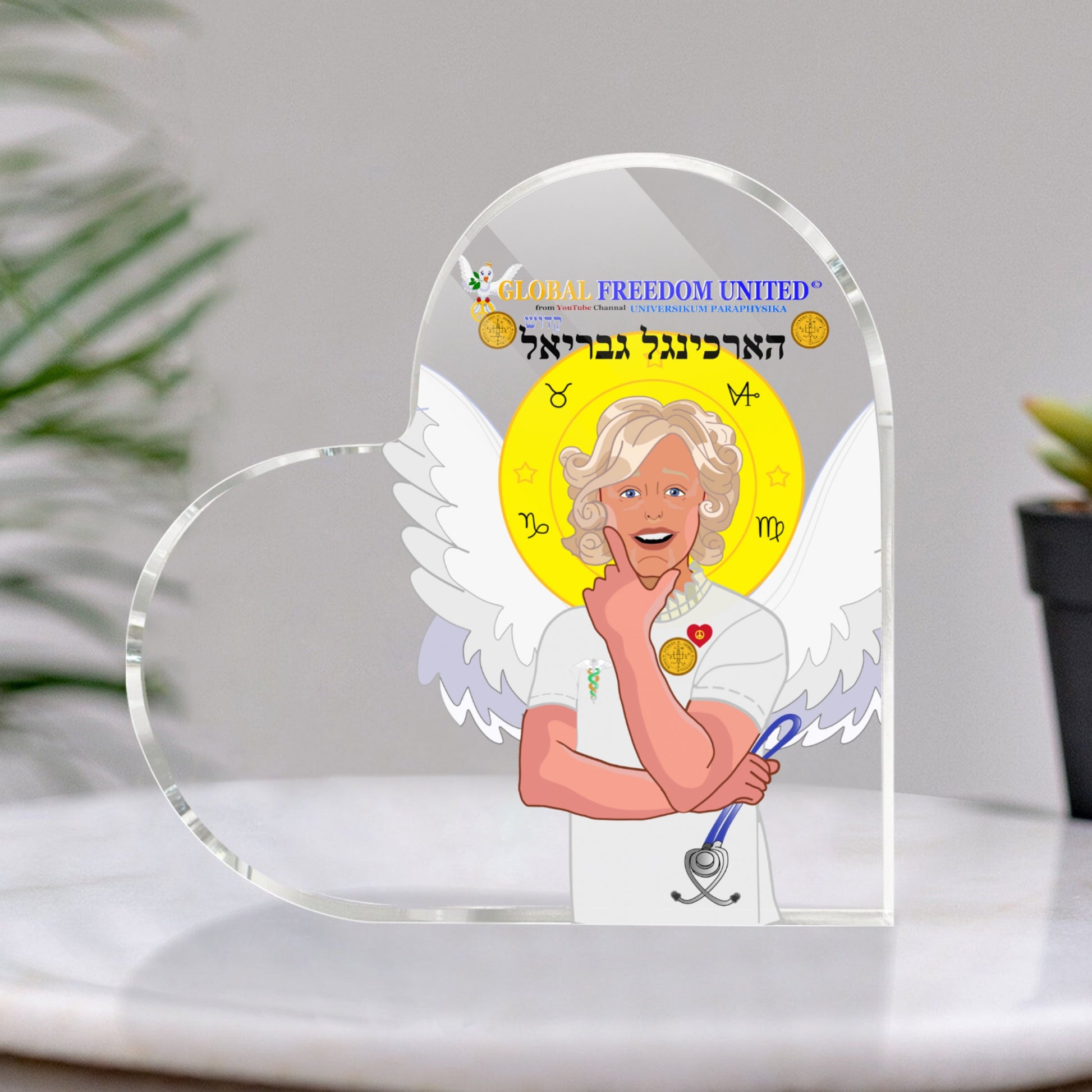 Acryl Heart GLOBAL FREEDOM UNITED© Archangel Gabriel Hebrew