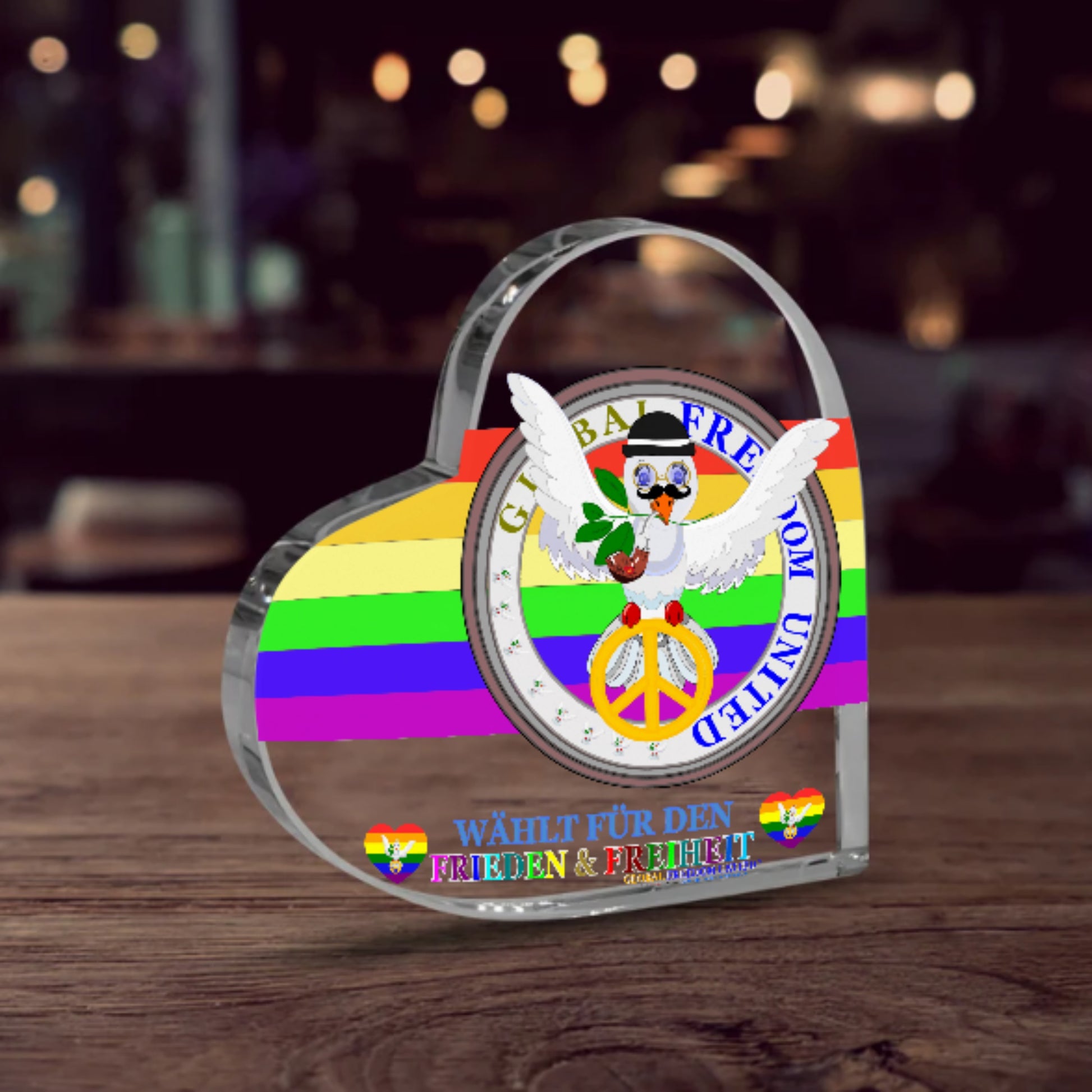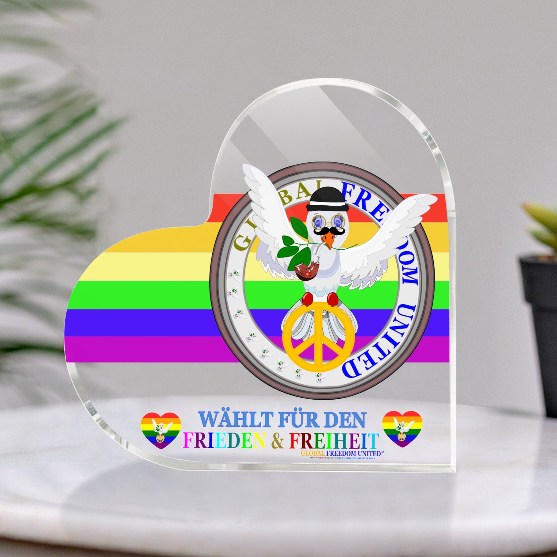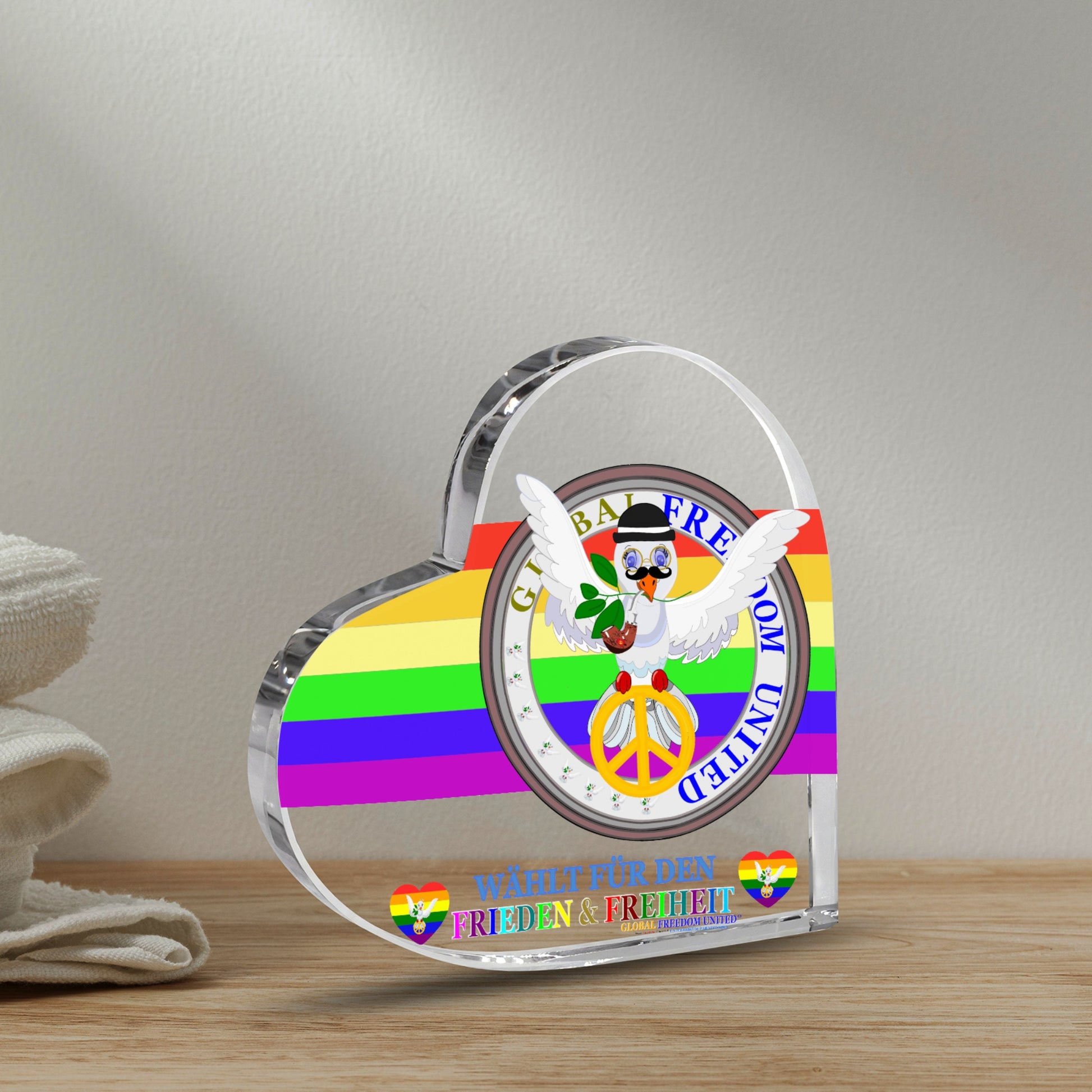 Acryl Heart Global Freedom United Dove Of Peace Men German