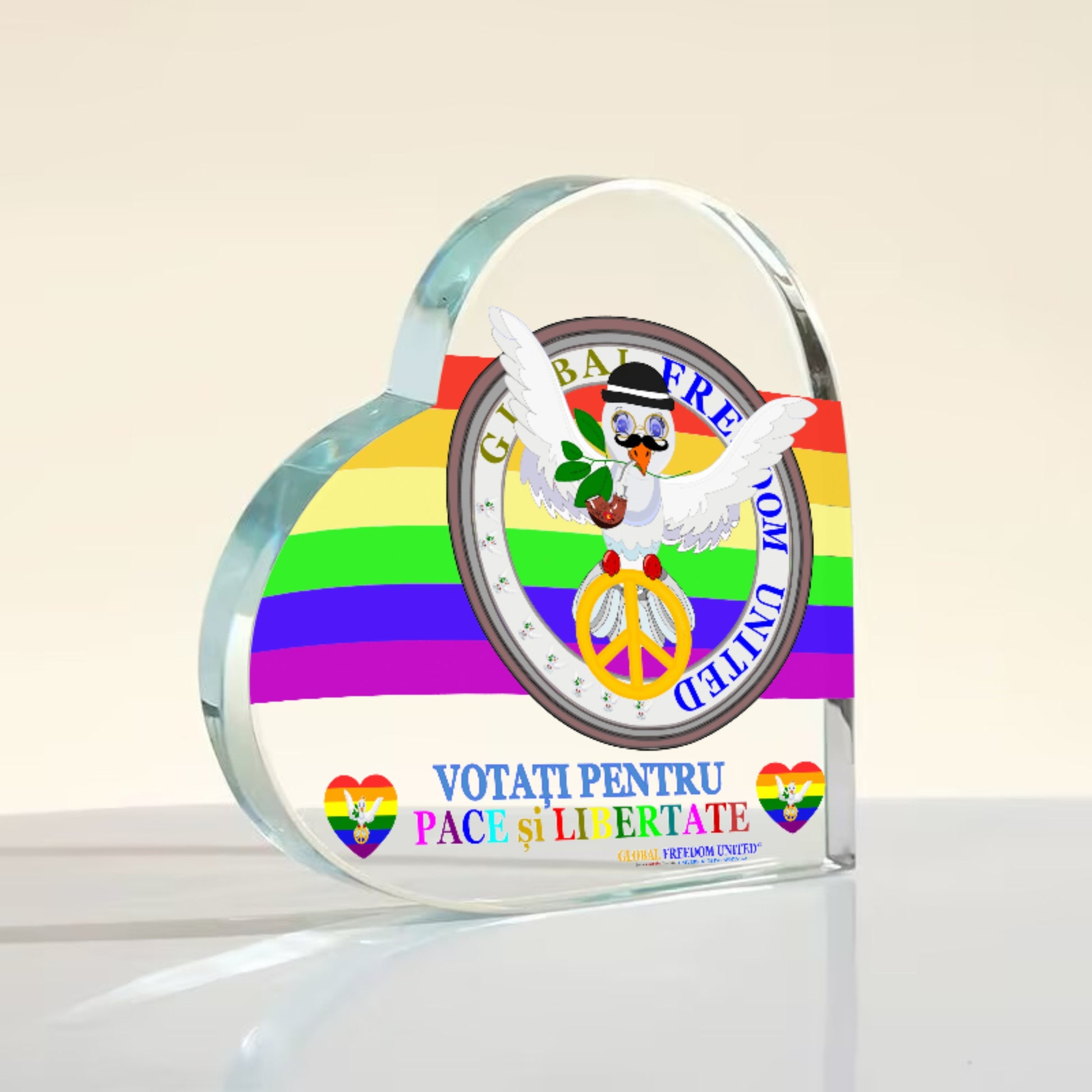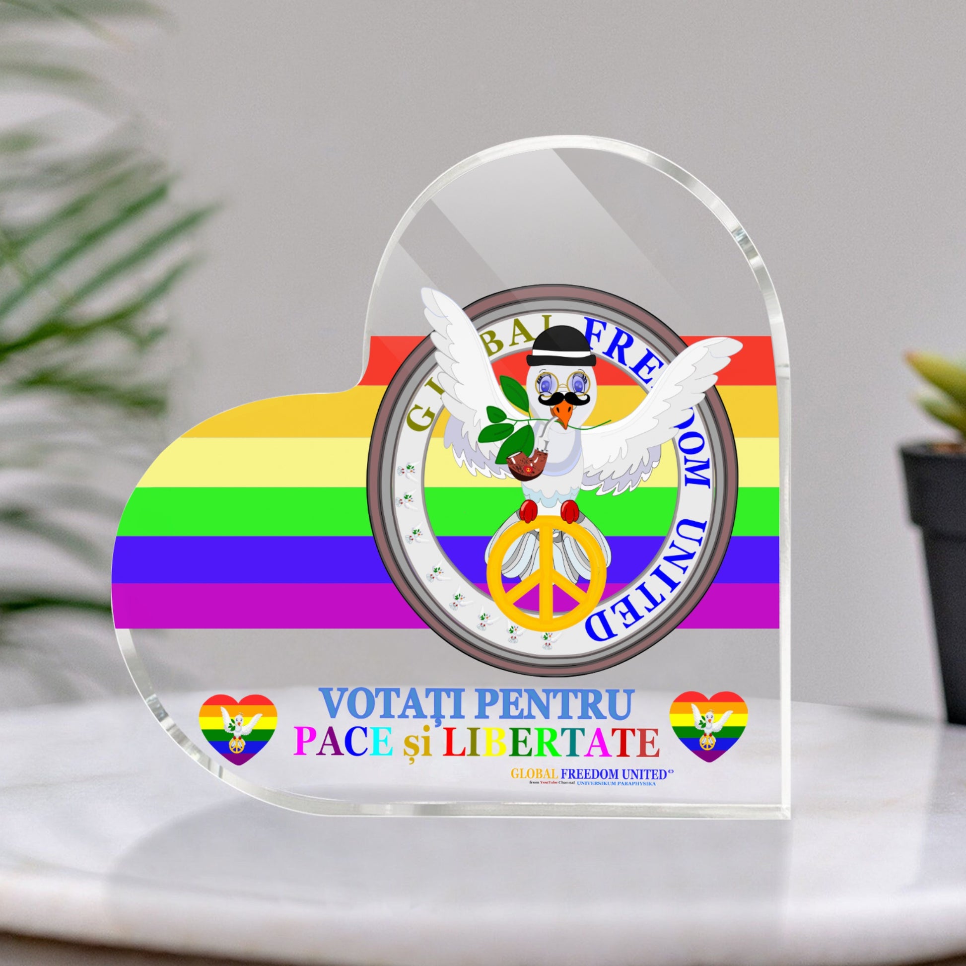 Acryl Heart Global Freedom United Dove Of Peace Men Romania
