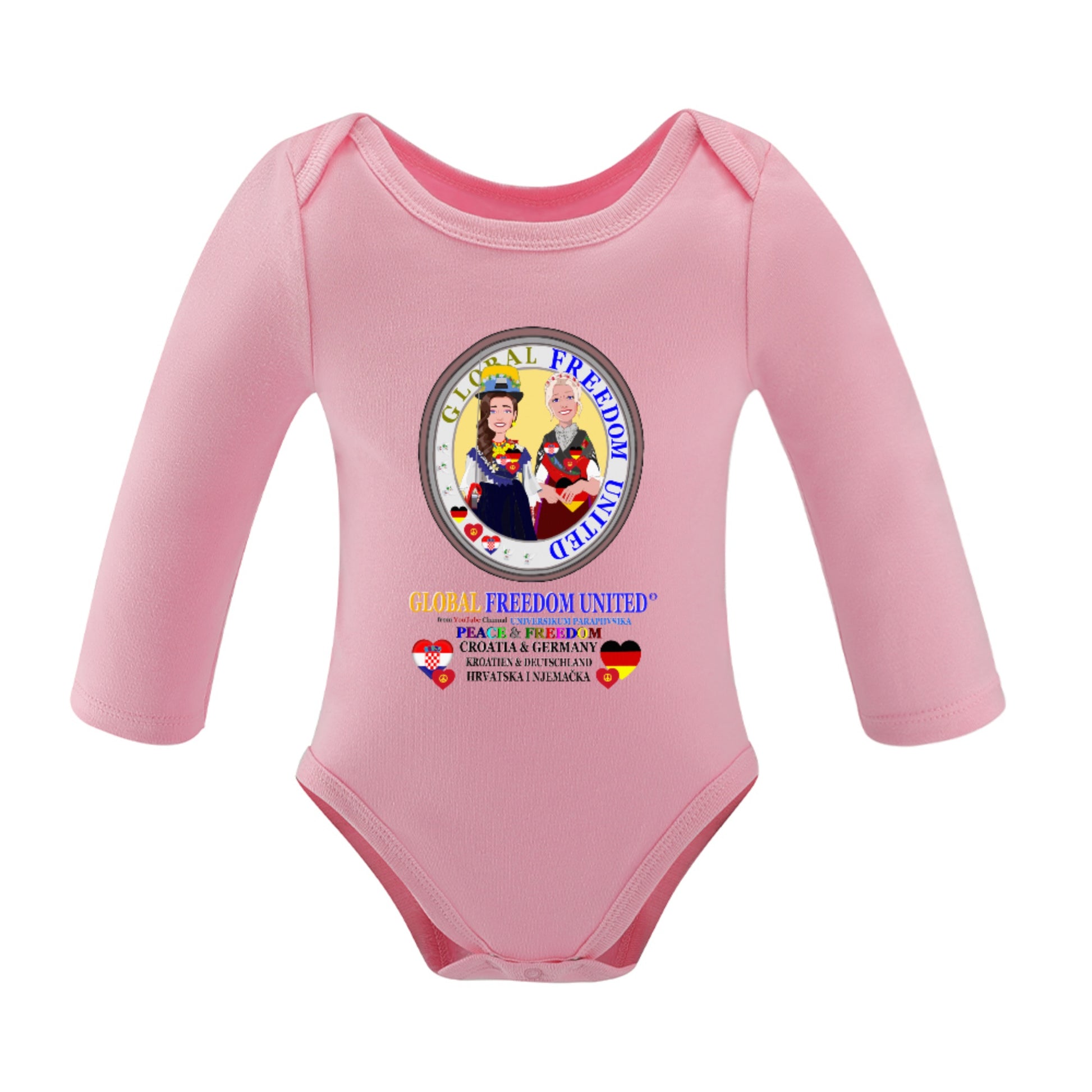 Baby Long-sleeve Bodysuit GLOBAL FREEDOM UNITED© Girl Croatia & Germany Brown Hair