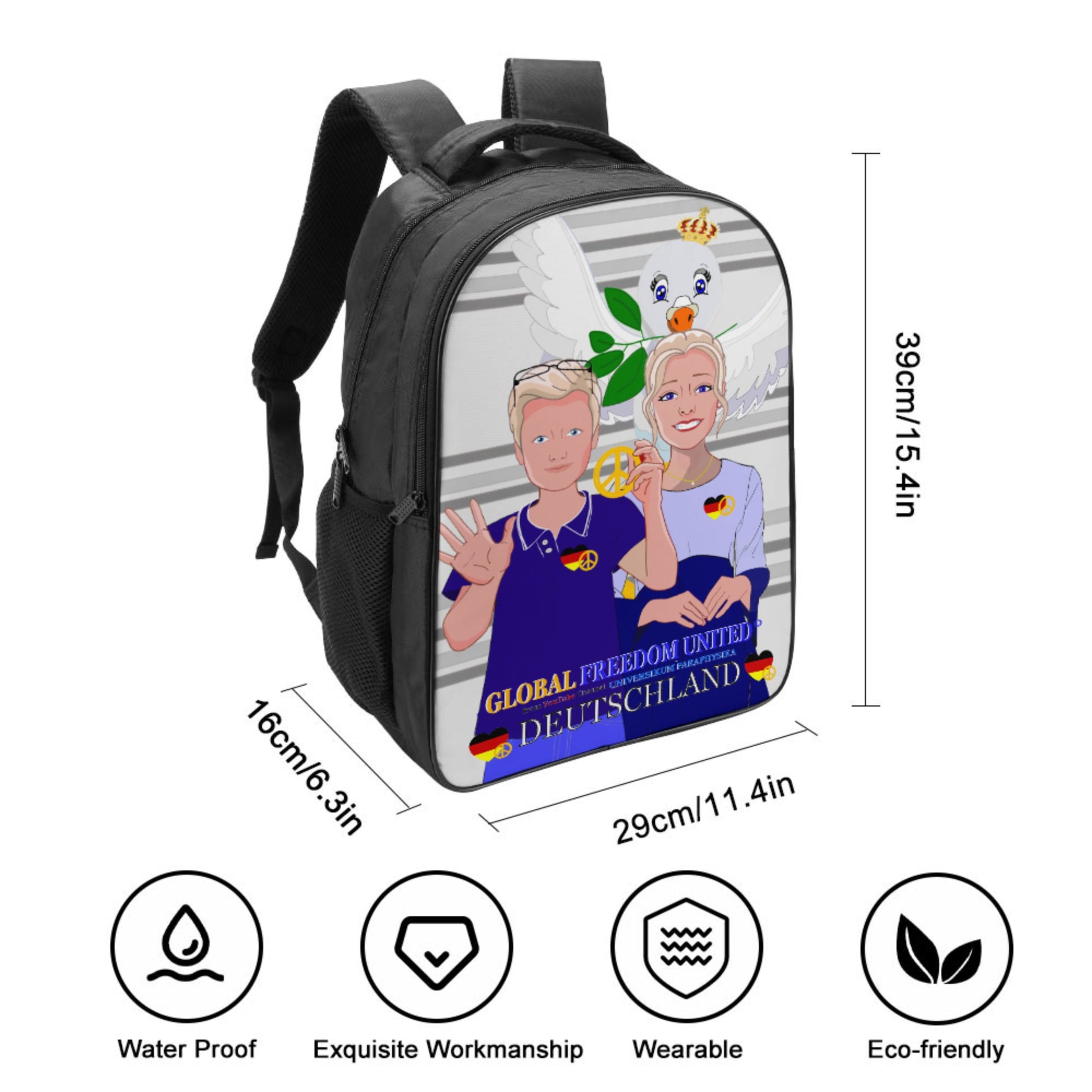 Backpack 16 Inch 2 Compartment Global Freedom United Couple Edition Germany V2 Grey