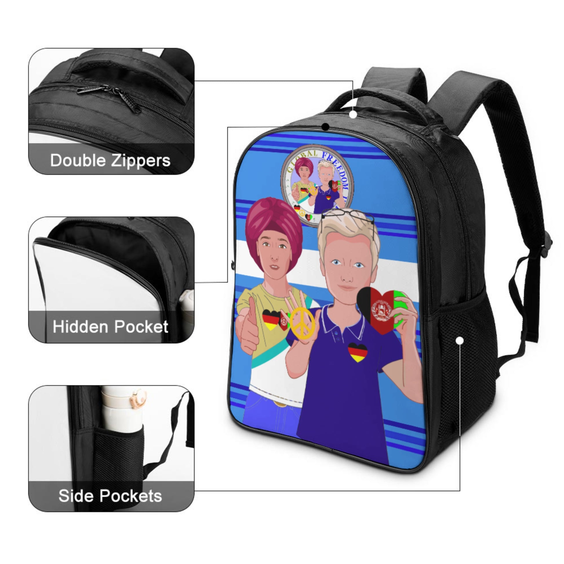 Bag Back GLOBAL FREEDOM UNITED© Men AFGHANISTAN & GERMANY Deep Blue