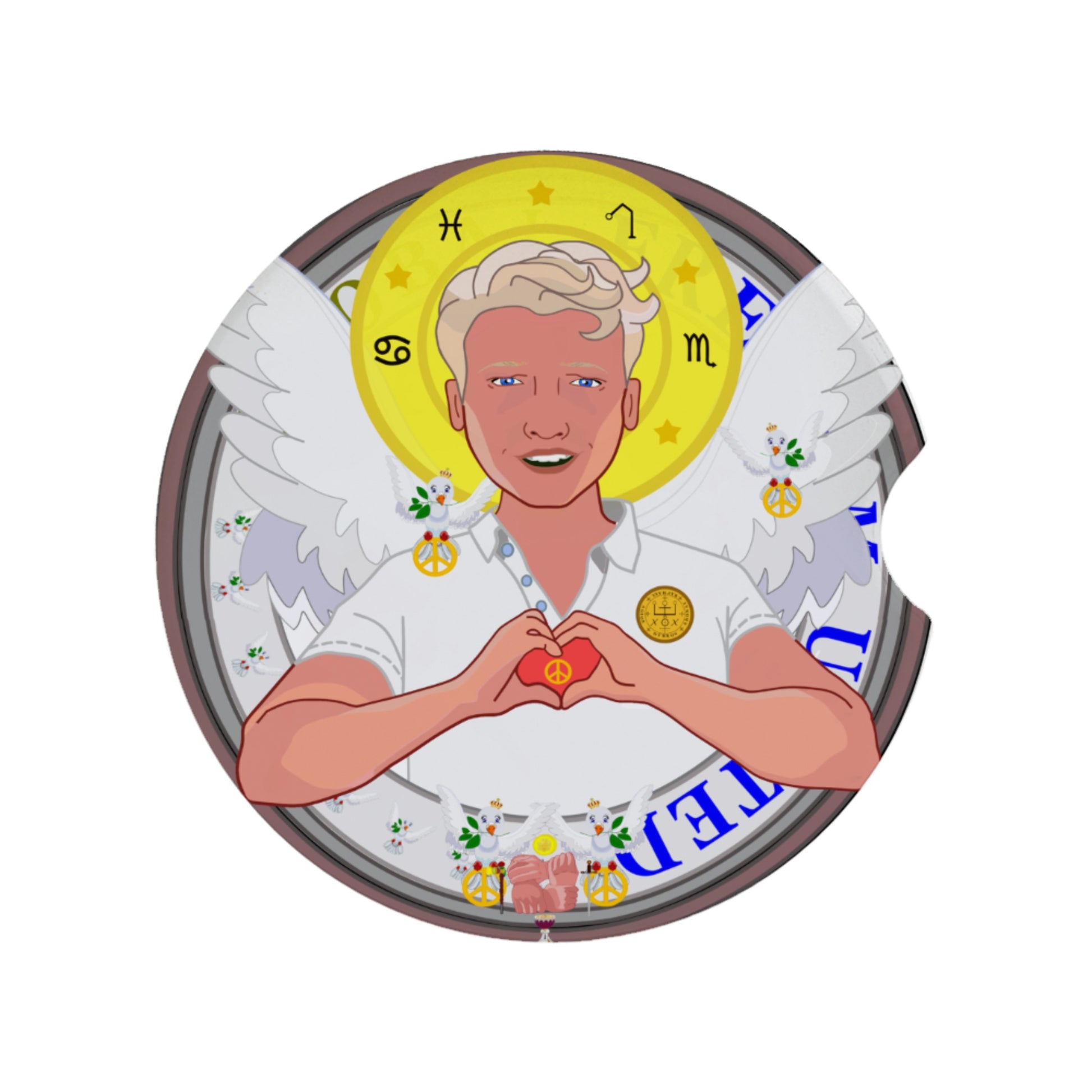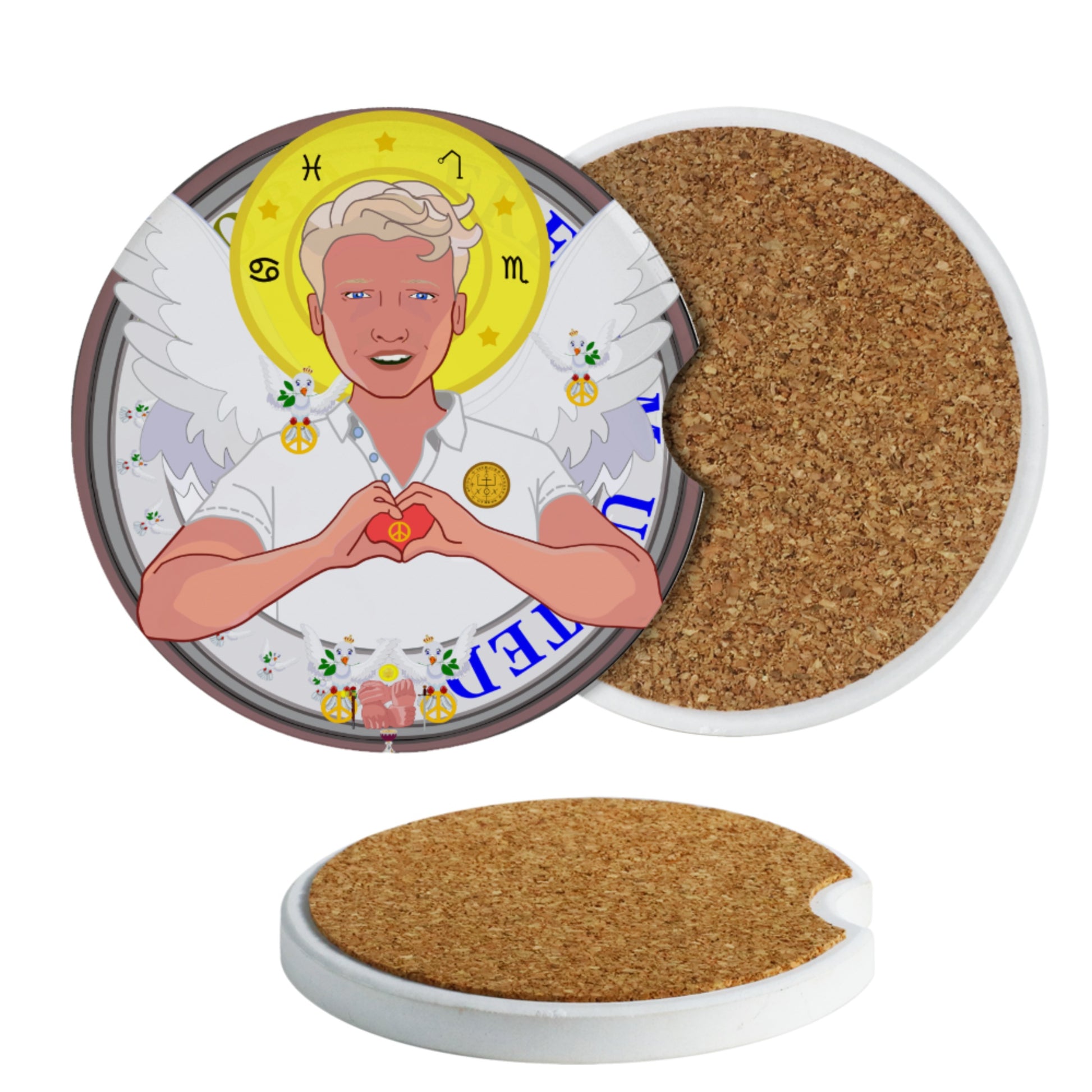 Ceramic Car Coaster GLOBAL FREEDOM UNITED© Archangel Rafael