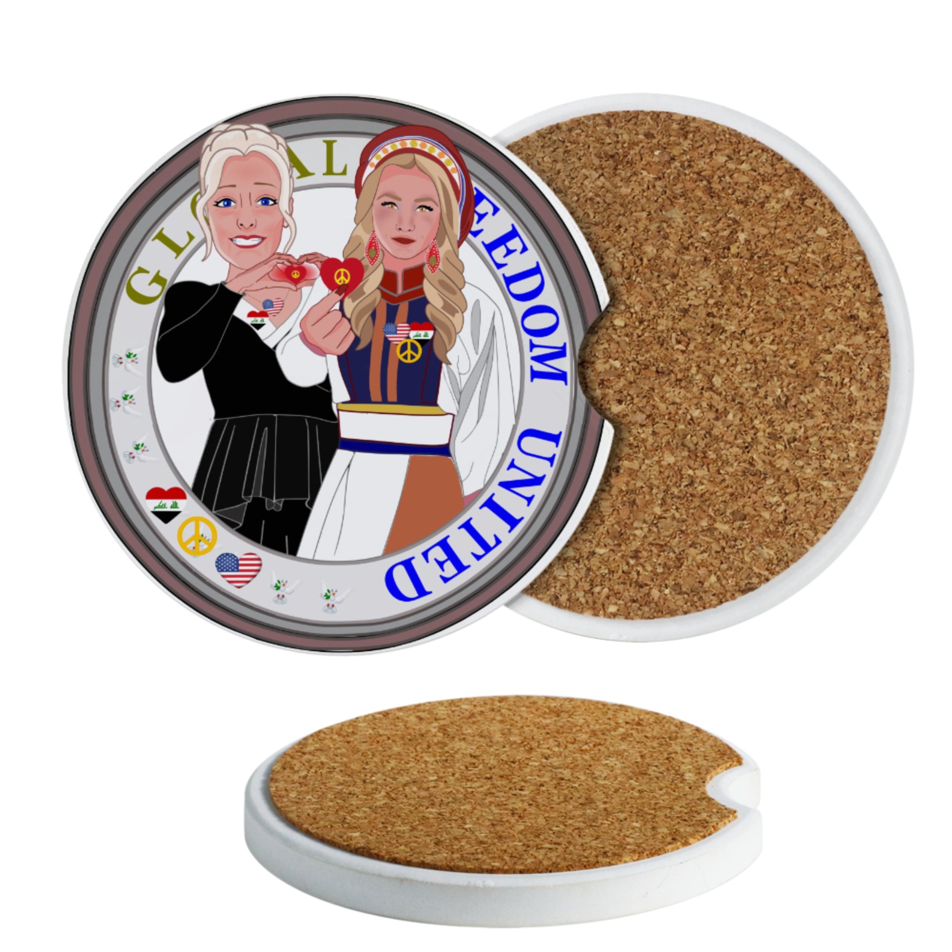Ceramic Car Coaster GLOBAL FREEDOM UNITED© Women Iraq & USA
