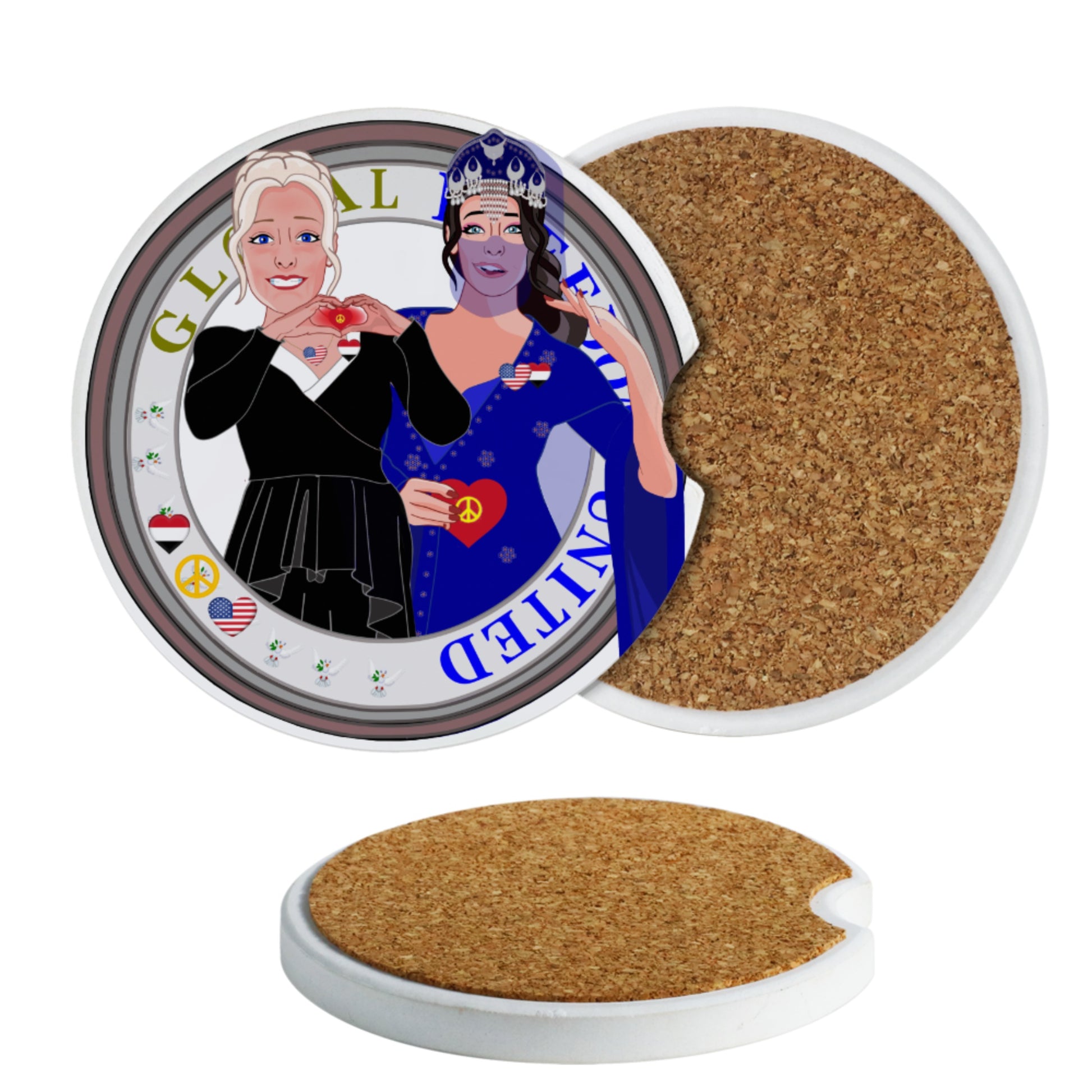Ceramic Car Coaster GLOBAL FREEDOM UNITED© Women Yemen & USA