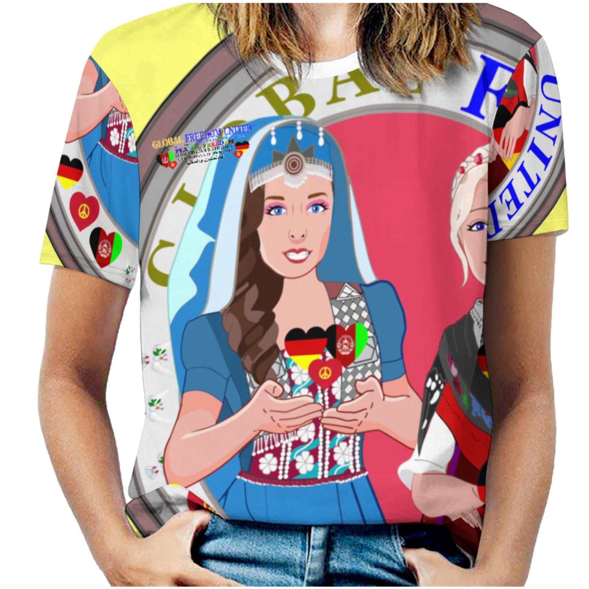 Full Print T-shirt Global Freedom United Women Afghanistan & Germany Old Peace Yellow