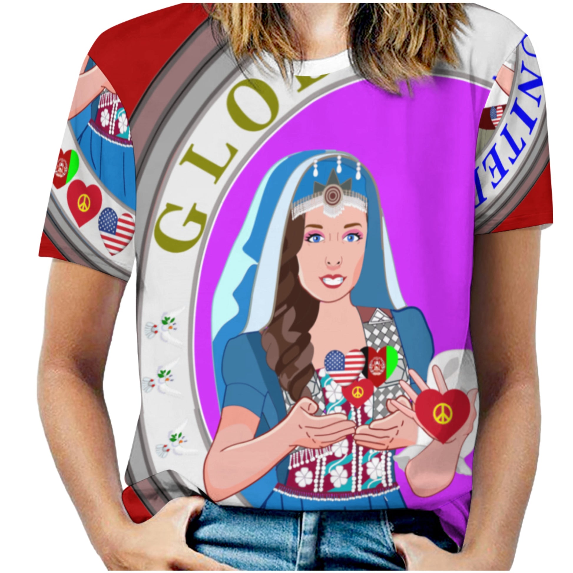 Women´s T-Shirt 3 GLOBAL FREEDOM UNITED© Women AFGHANISTAN & USA Red