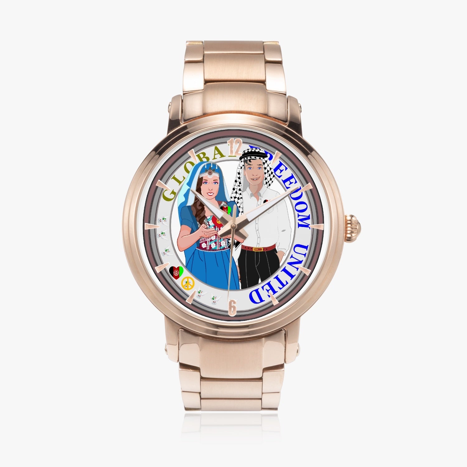 GLOBAL FREEDOM UNITED© Couple Afghanistan New Steel Strap Automatic Watch (With Indicators)