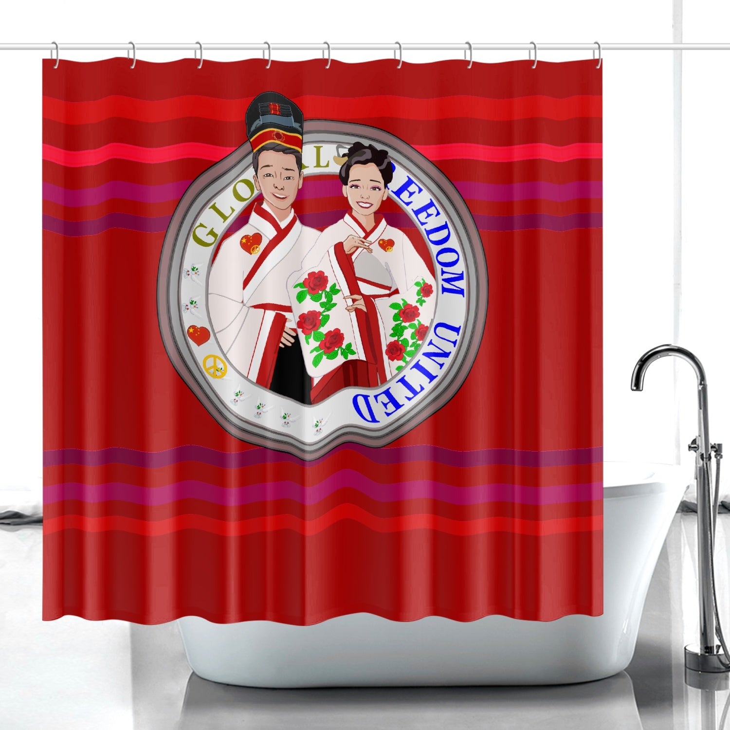 GLOBAL FREEDOM UNITED© Couple China Red - Quick-drying Shower Curtain