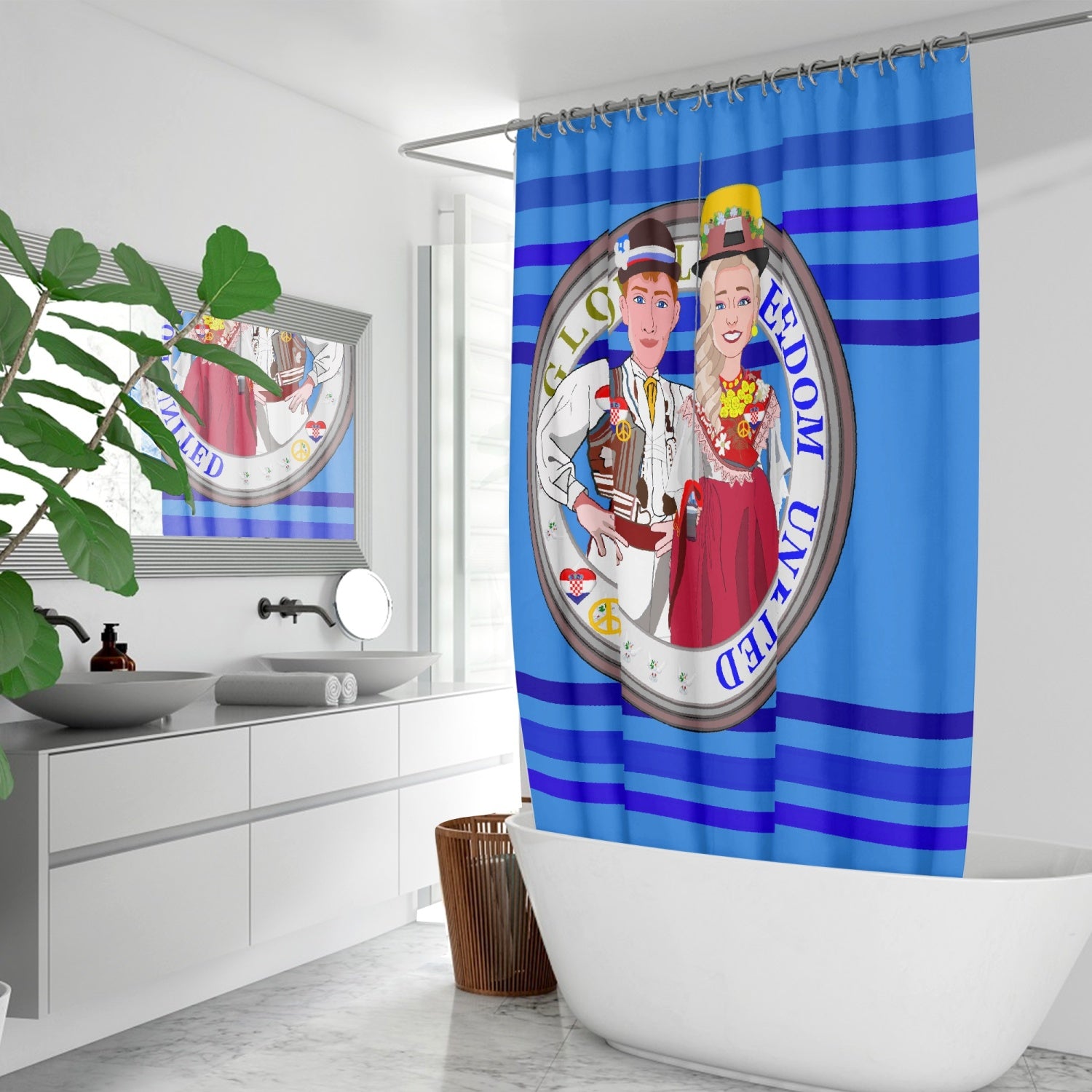 GLOBAL FREEDOM UNITED© Couple Croatia Deep Blue - Quick-drying Shower Curtain