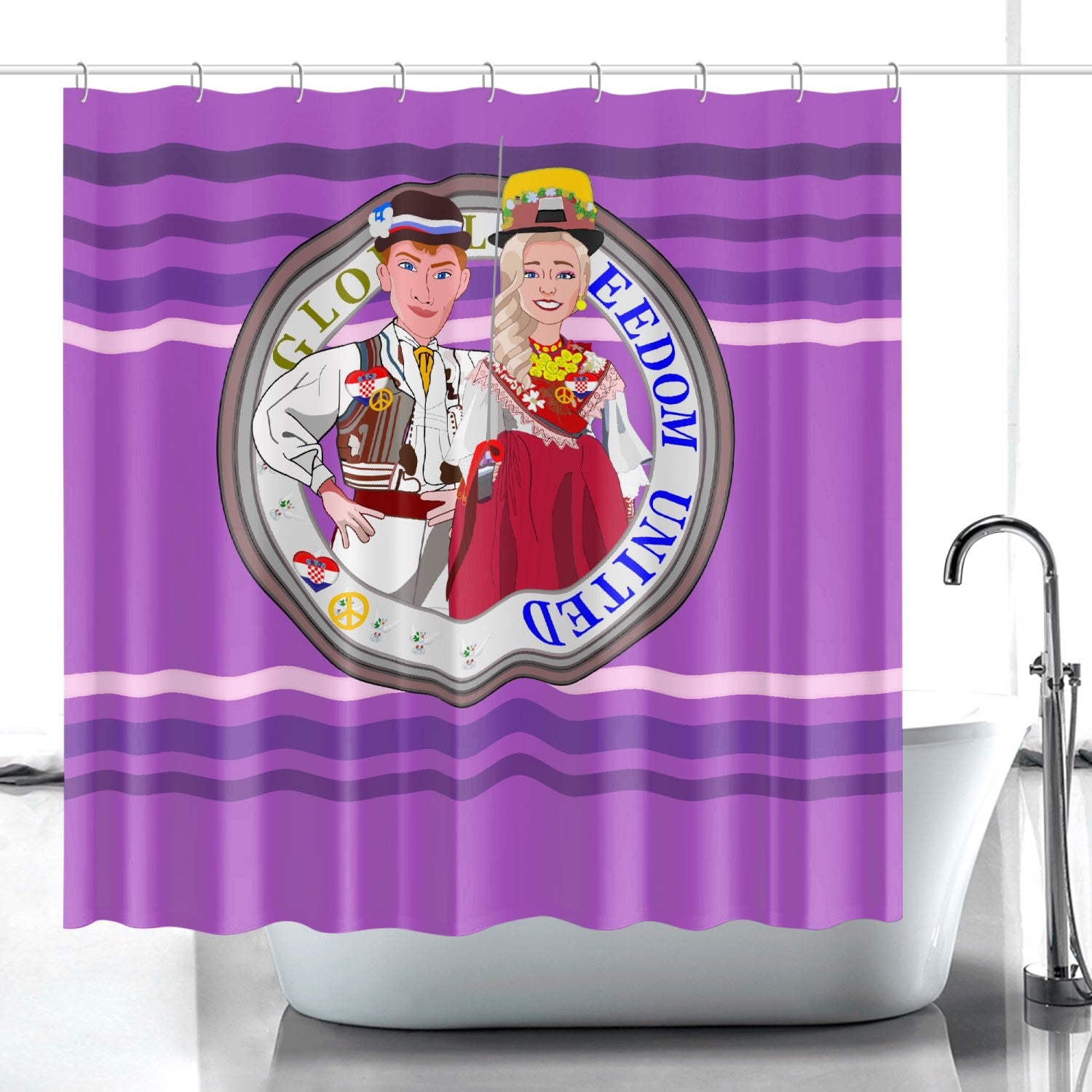 GLOBAL FREEDOM UNITED© Couple Croatia Lilac - Quick-drying Shower Curtain