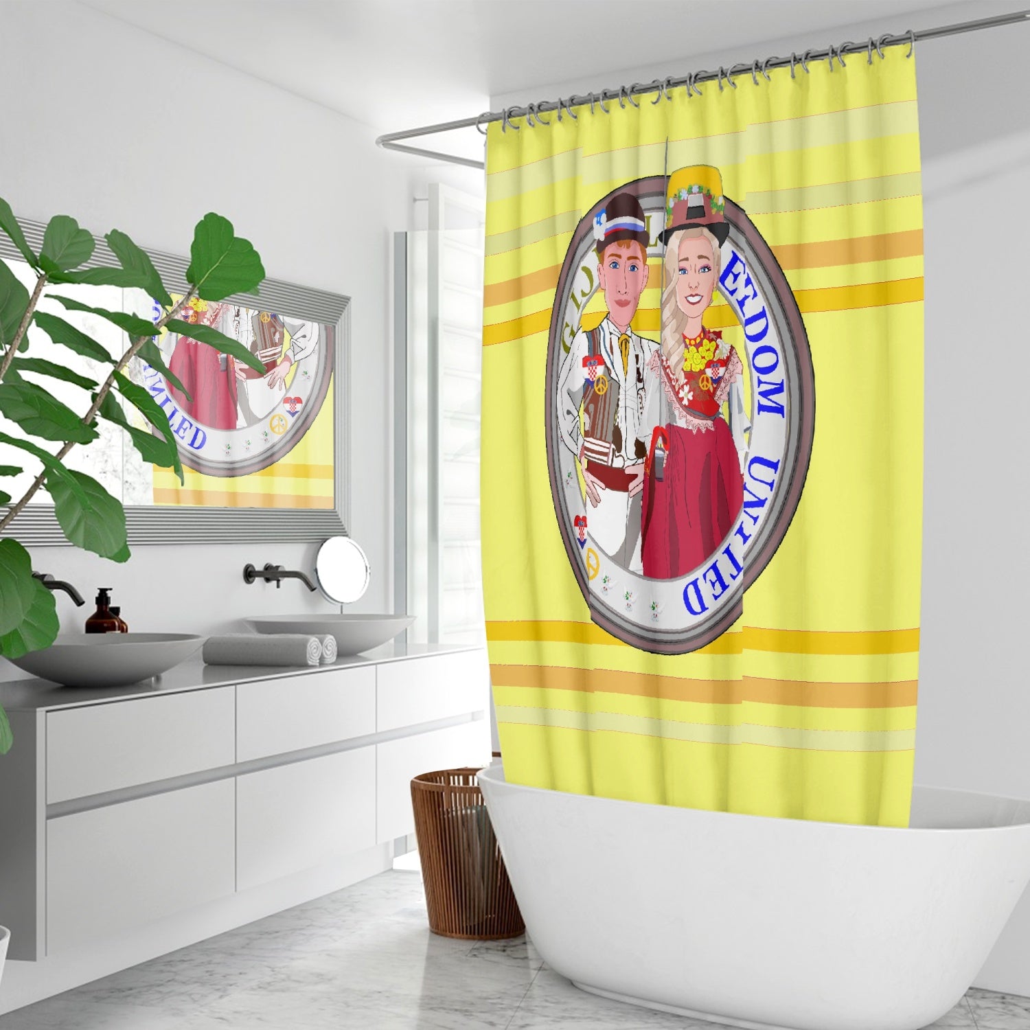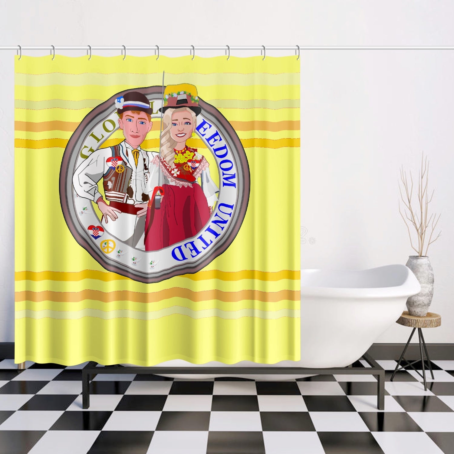 GLOBAL FREEDOM UNITED© Couple Croatia Yellow - Quick-drying Shower Curtain