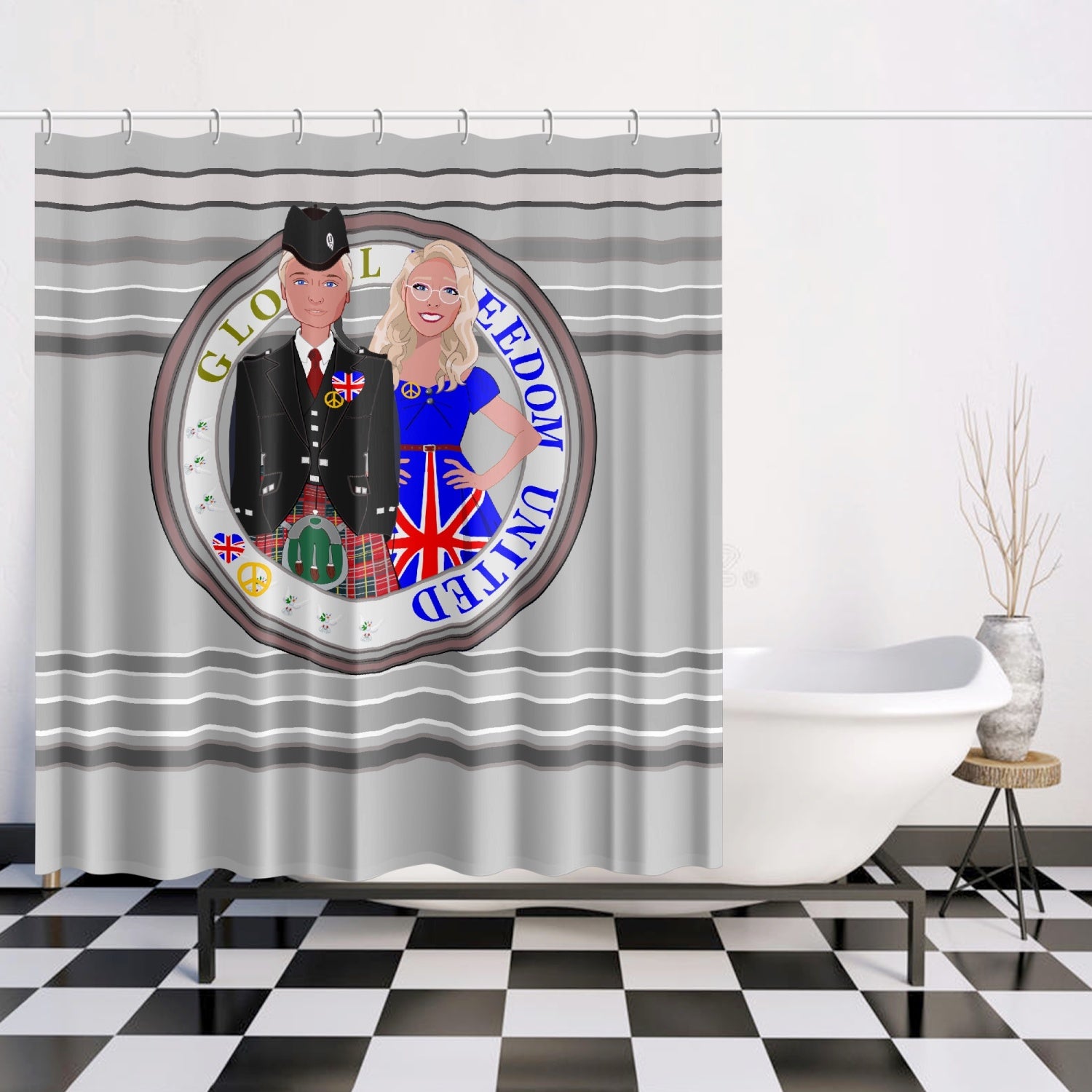 GLOBAL FREEDOM UNITED© Couple England Grey - Quick-drying Shower Curtain