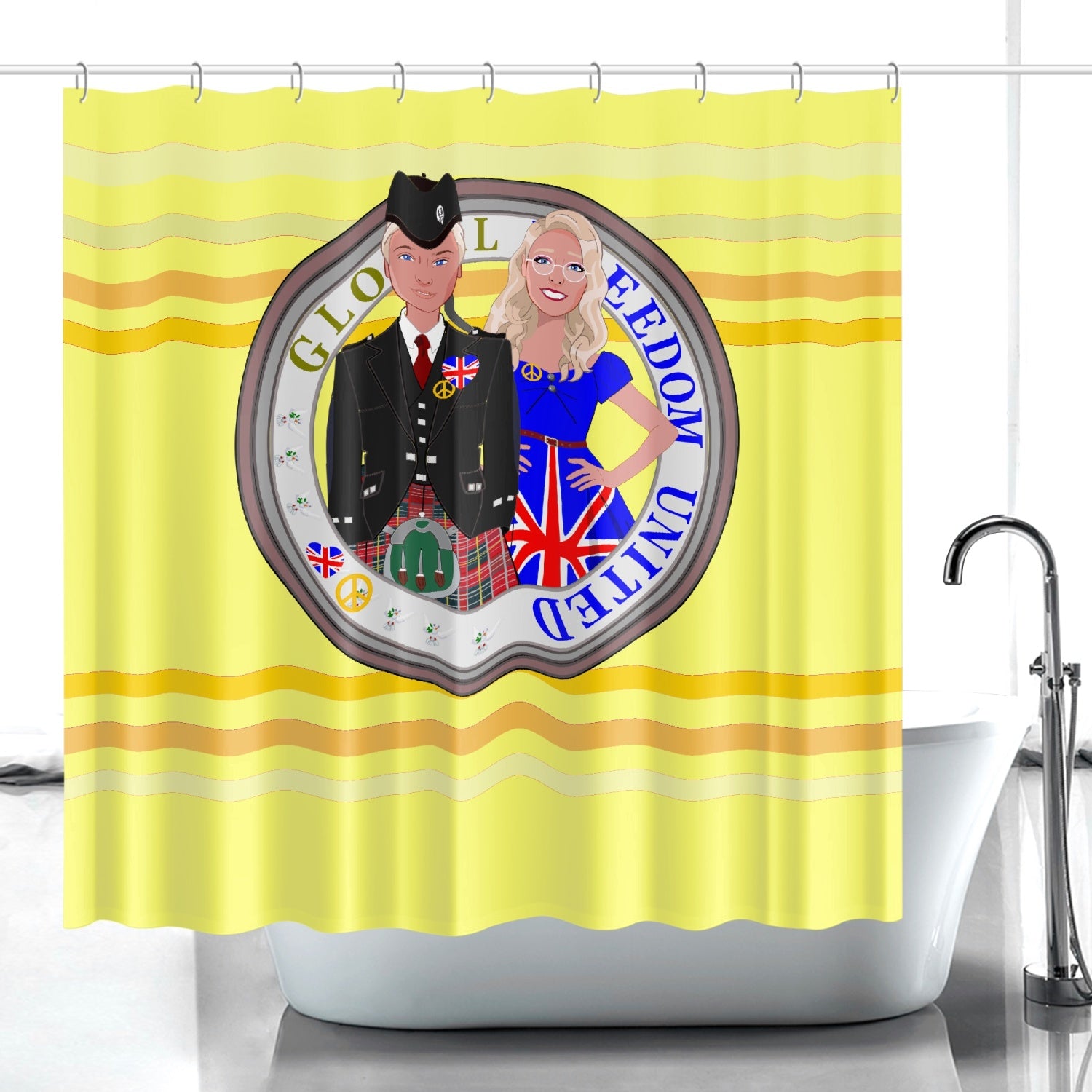 GLOBAL FREEDOM UNITED© Couple England Yellow - Quick-drying Shower Curtain