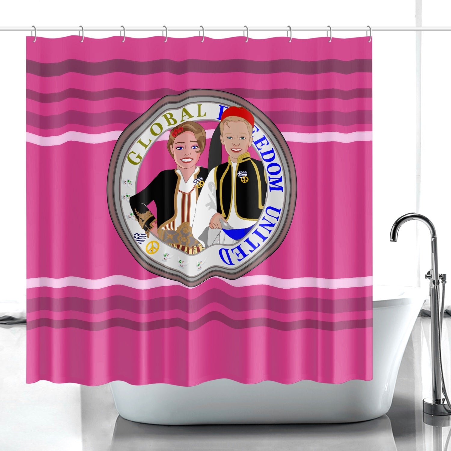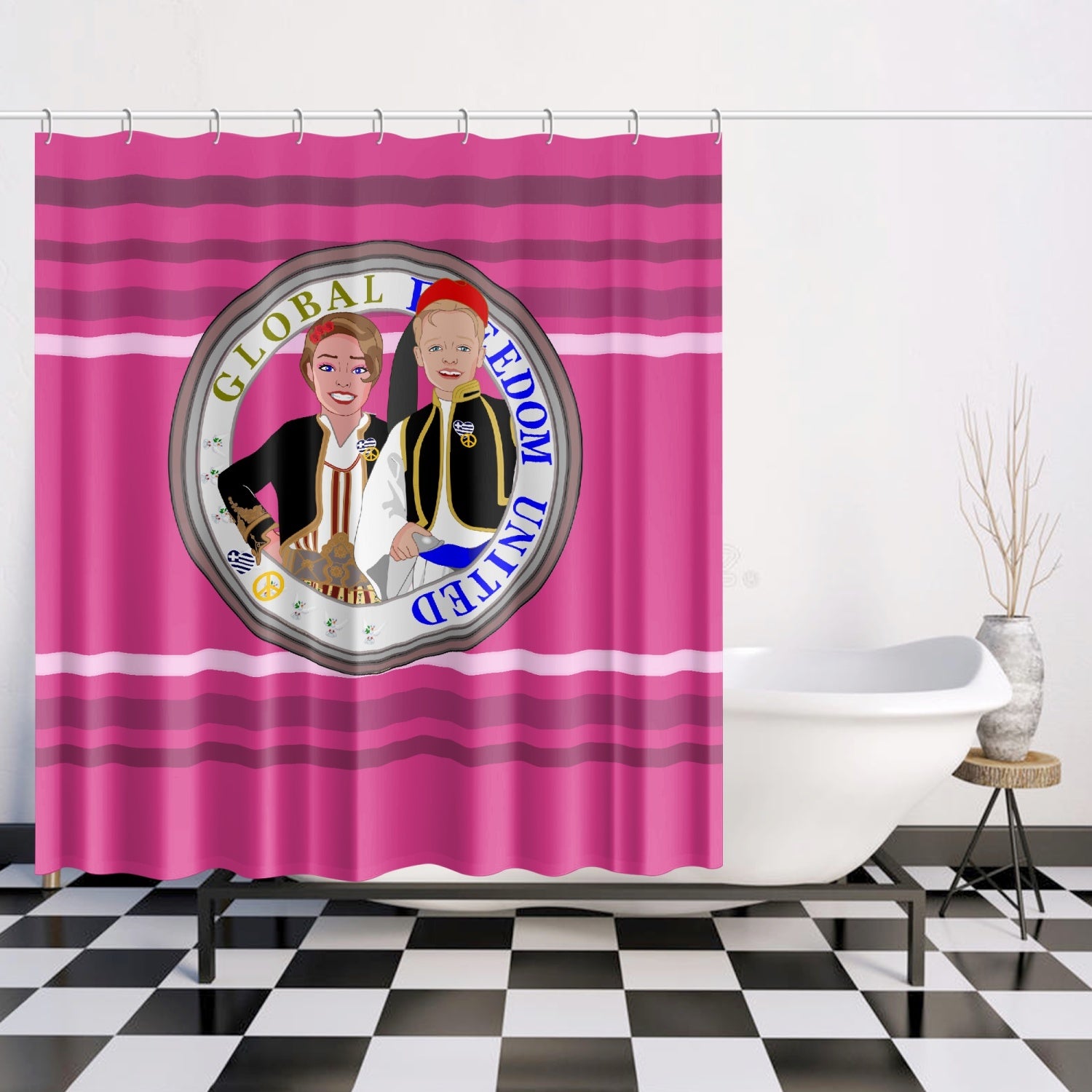 GLOBAL FREEDOM UNITED© Couple Greece Pink2 Quick-drying Shower Curtain