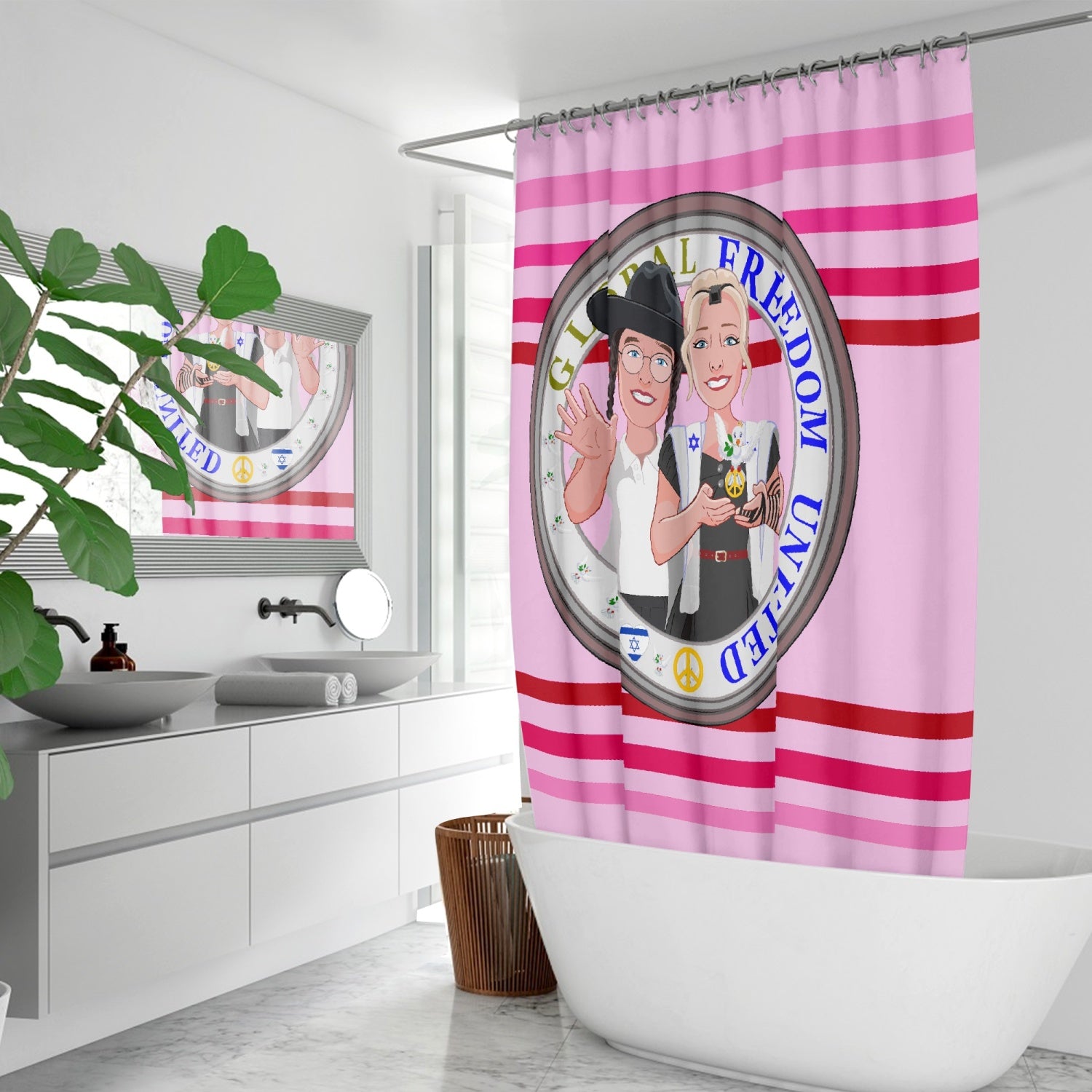 GLOBAL FREEDOM UNITED© Couple Israel Pink1 - Quick-drying Shower Curtain