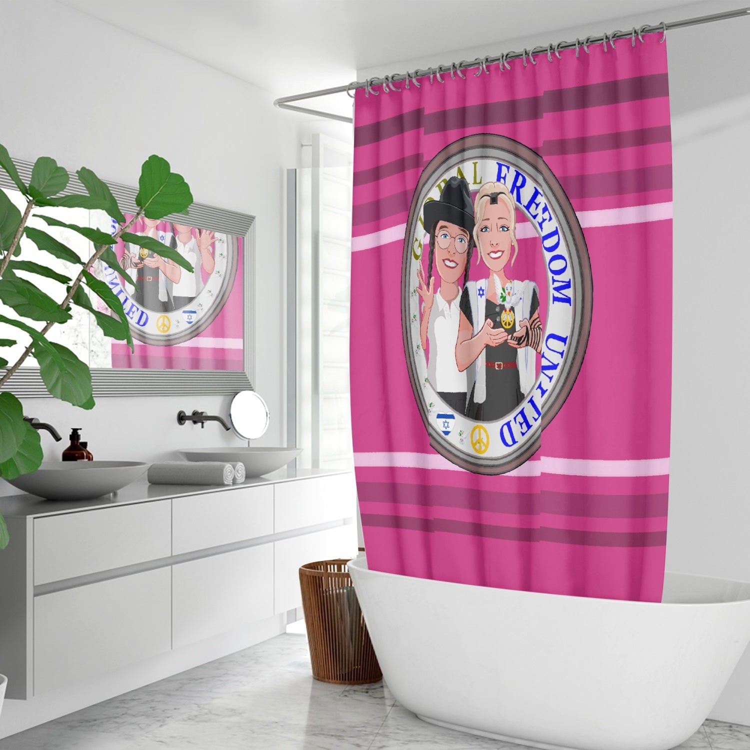 GLOBAL FREEDOM UNITED© Couple Israel Pink2 - Quick-drying Shower Curtain