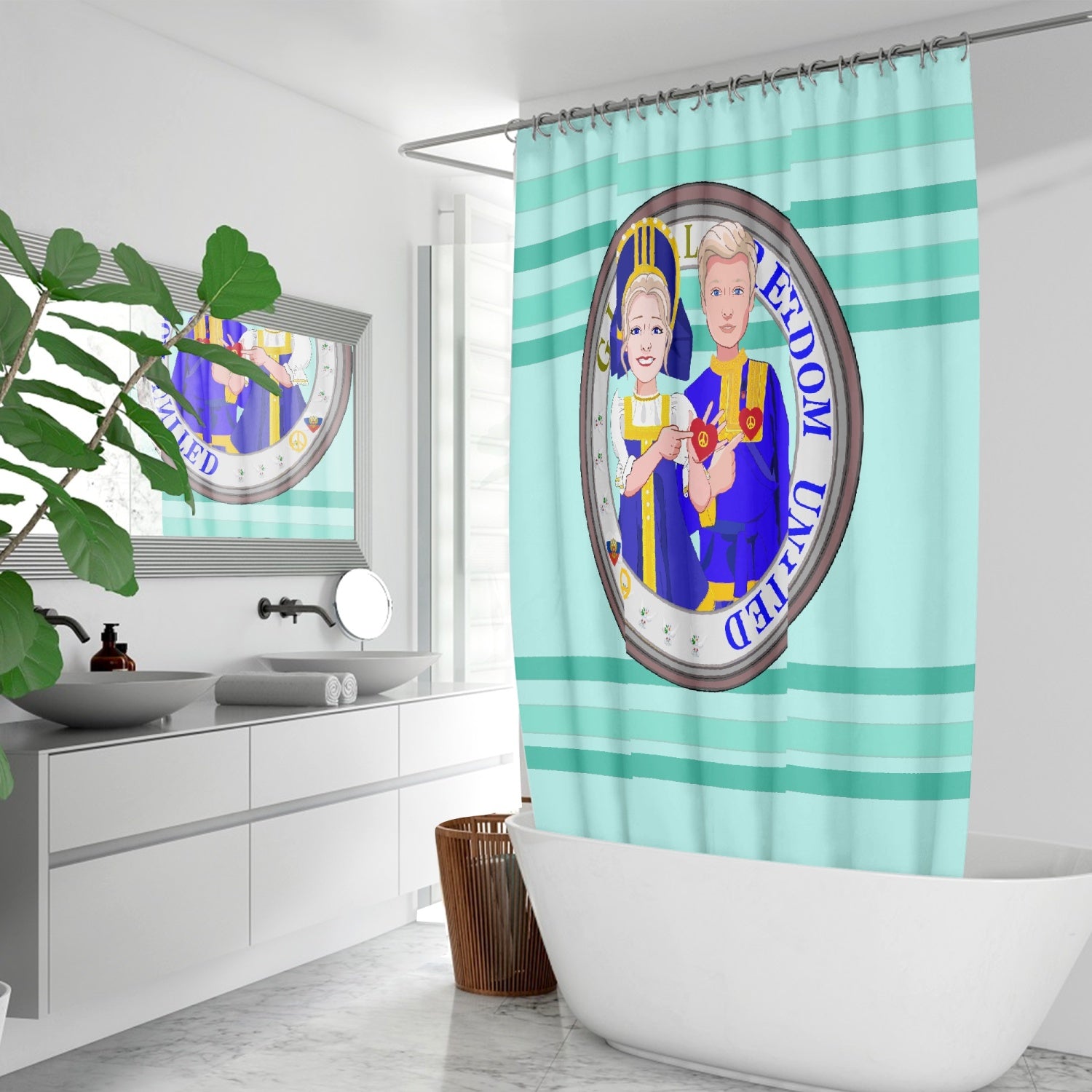 GLOBAL FREEDOM UNITED© Couple Russia Light Green - Quick-drying Shower Curtain