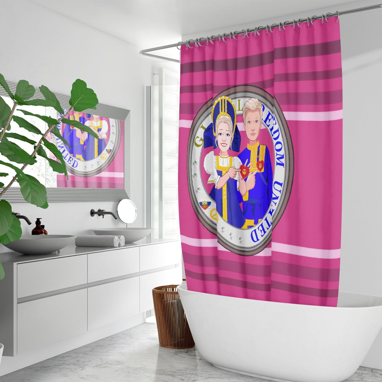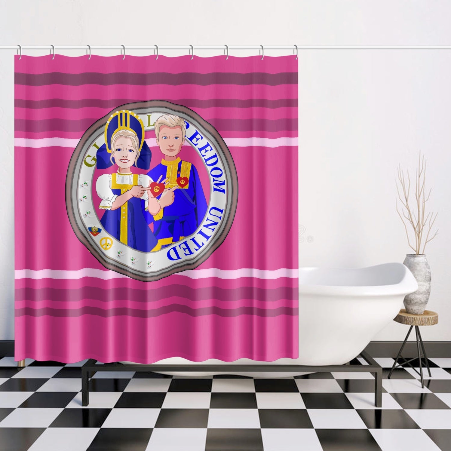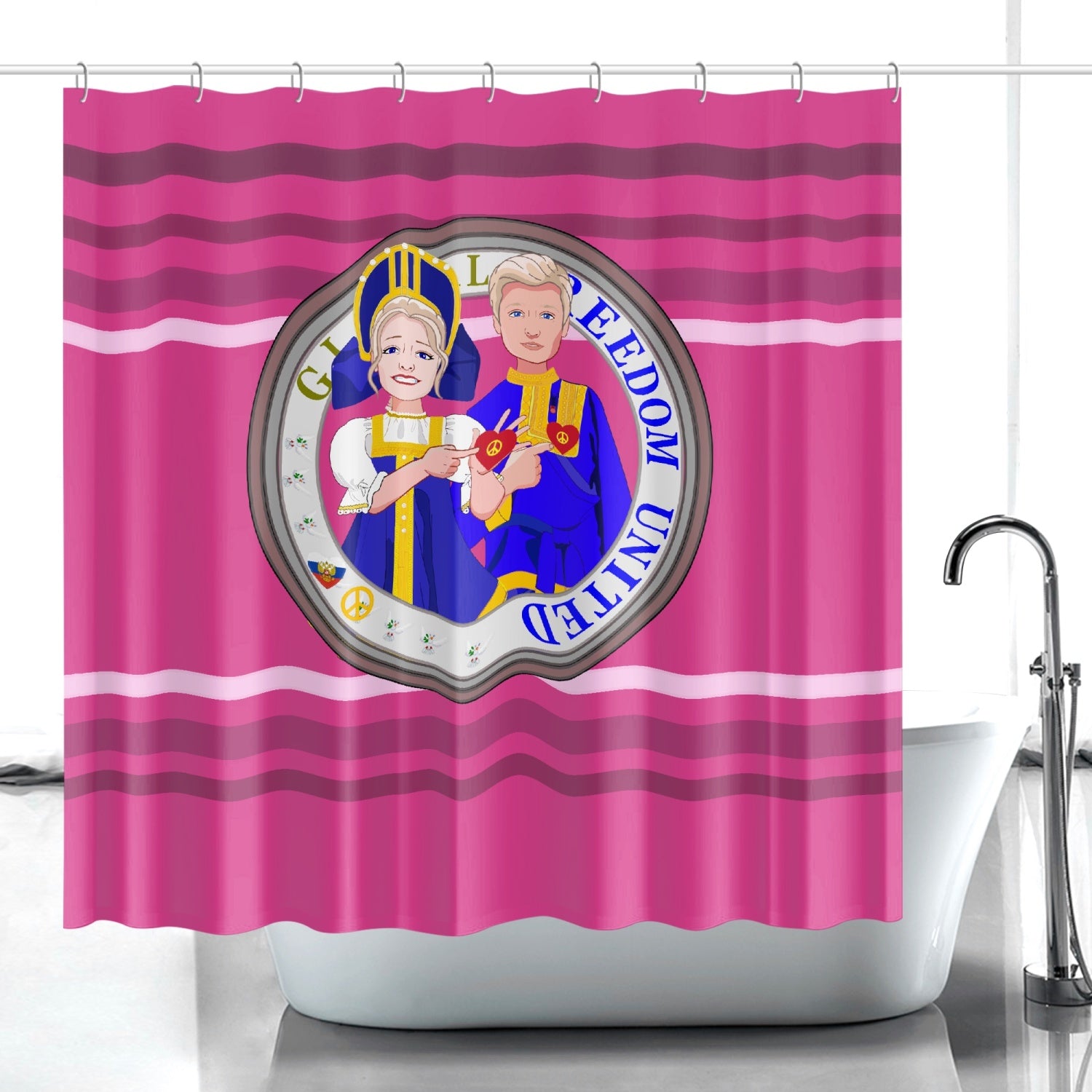 GLOBAL FREEDOM UNITED© Couple Russia Pink2 - Quick-drying Shower Curtain
