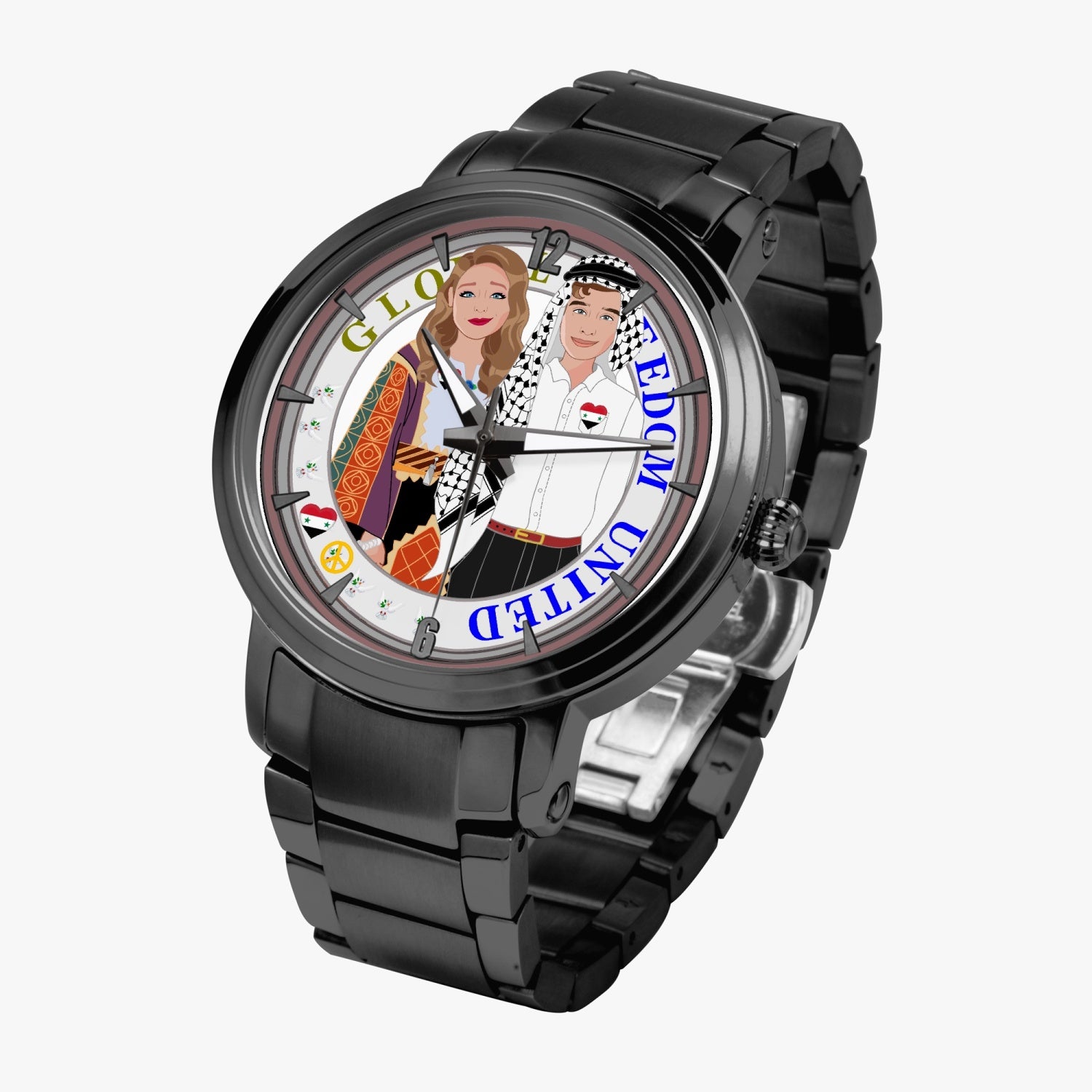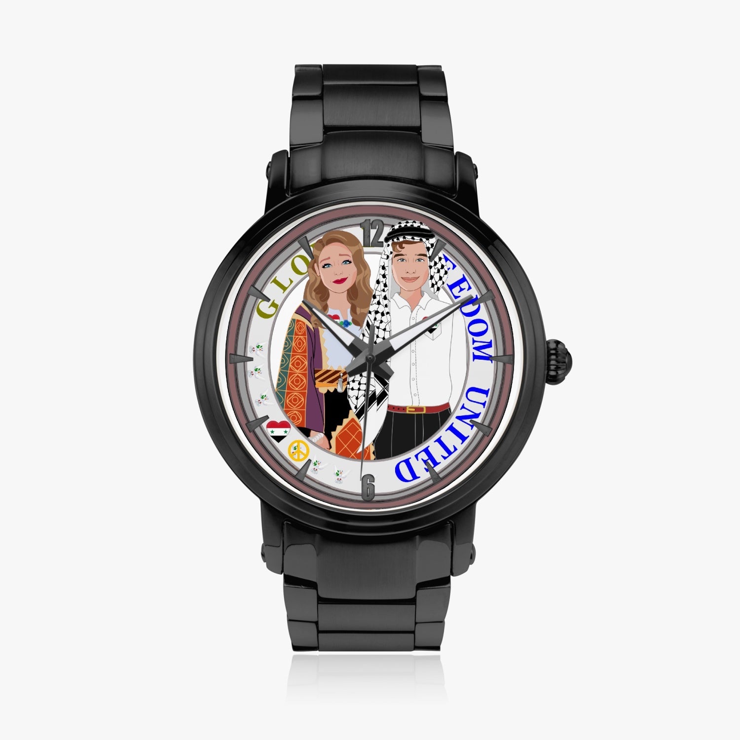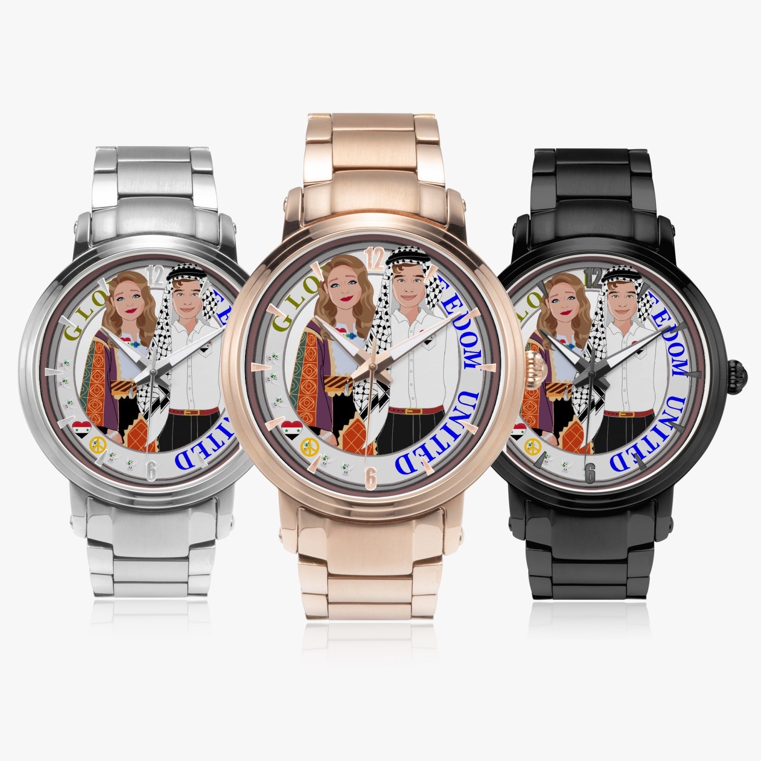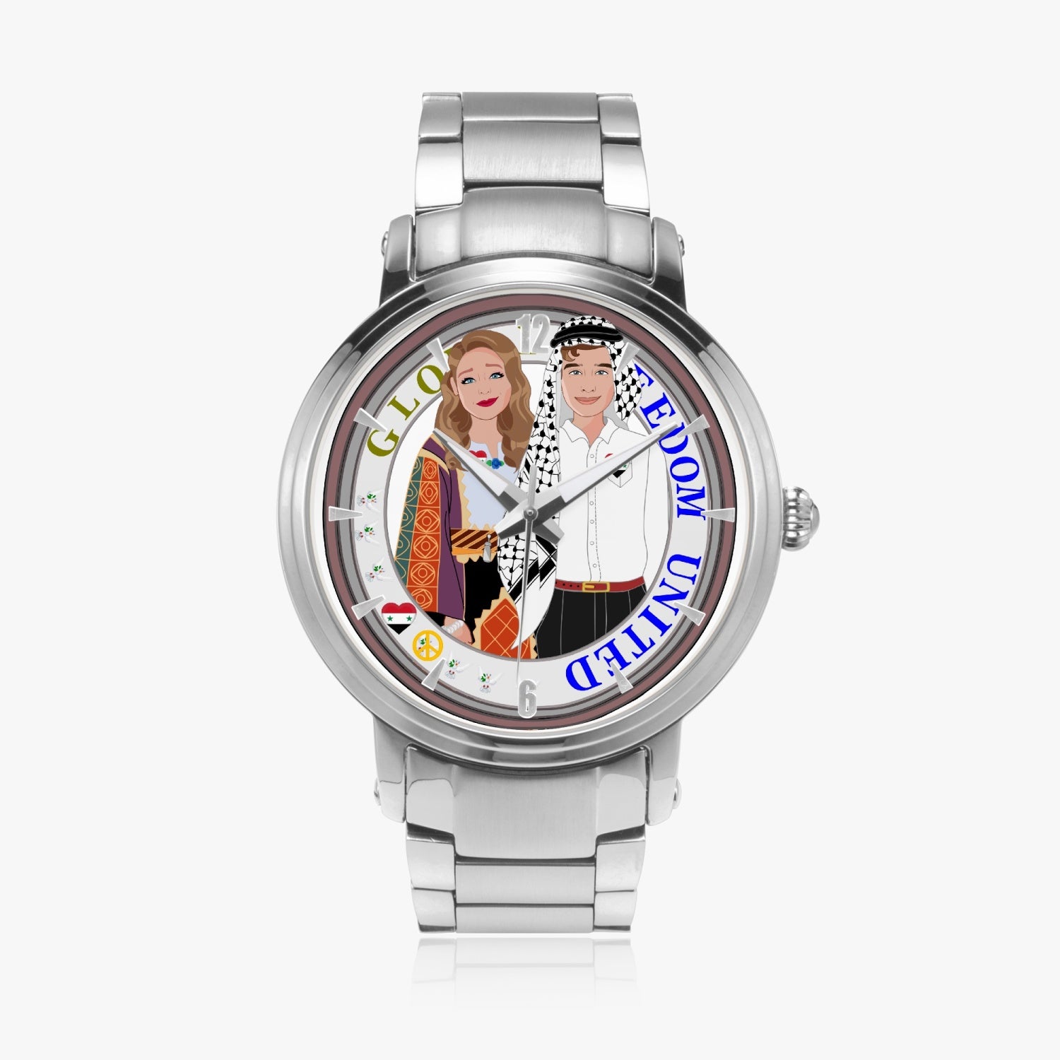 GLOBAL FREEDOM UNITED© Couple Syria New Steel Strap Automatic Watch (With Indicators)