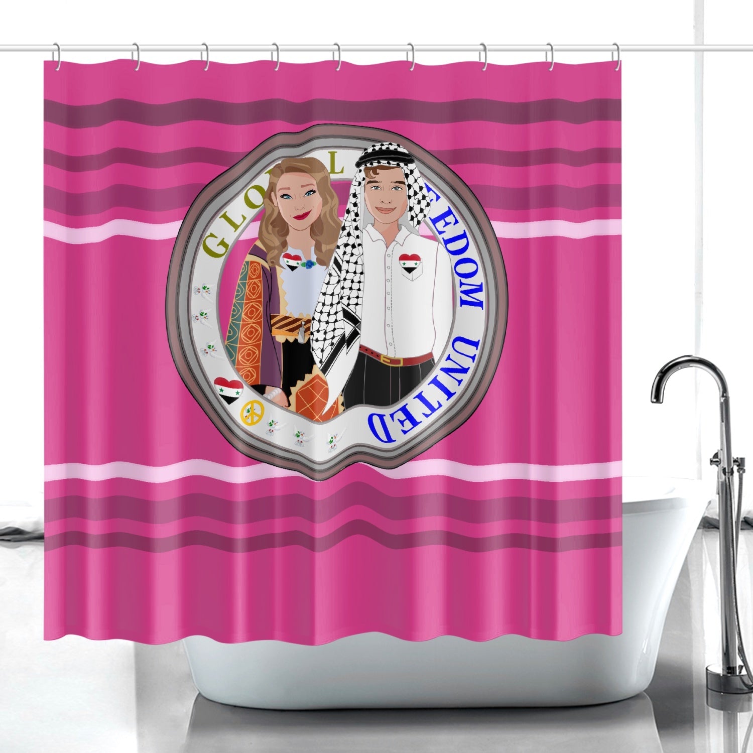 GLOBAL FREEDOM UNITED© Couple Syria Pink2 - Quick-drying Shower Curtain