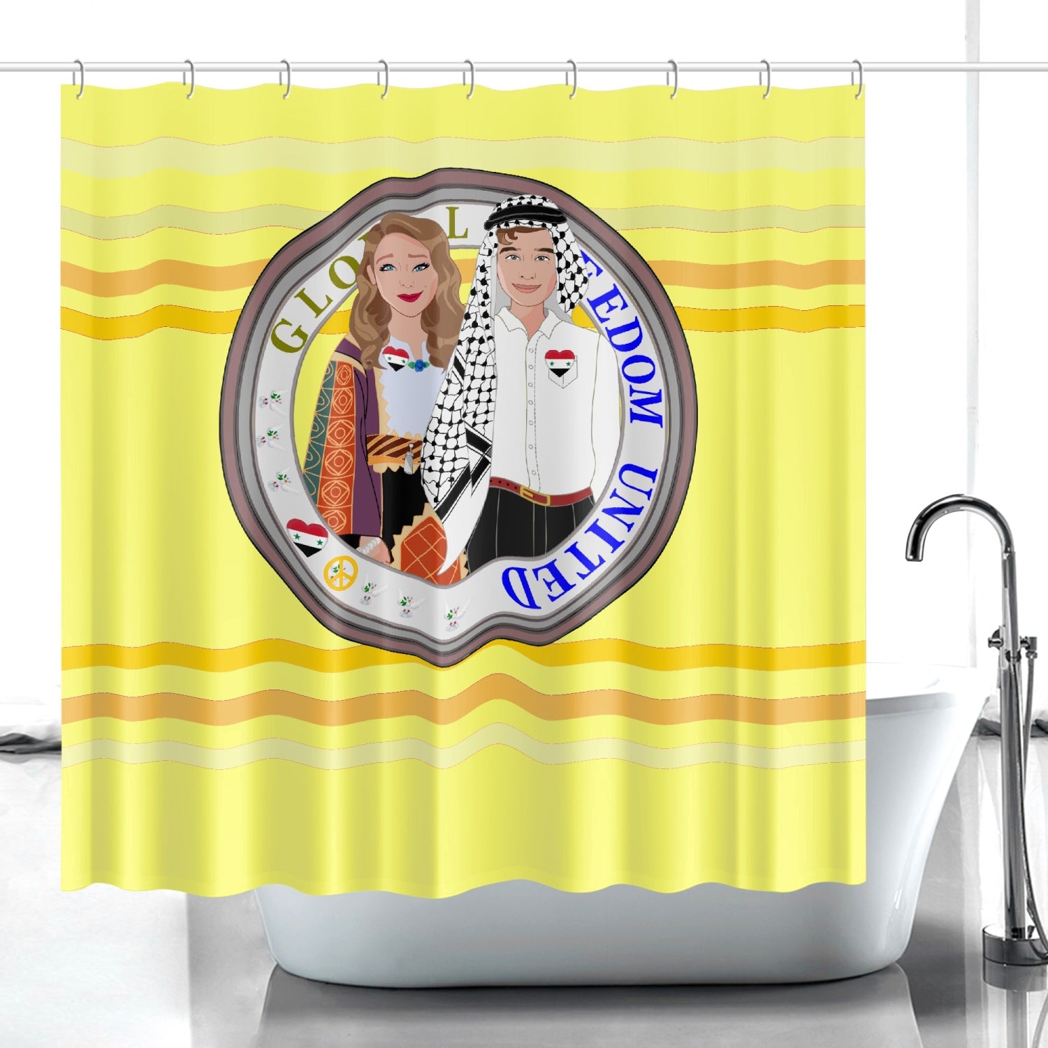 GLOBAL FREEDOM UNITED© Couple Syria Yellow - Quick-drying Shower Curtain