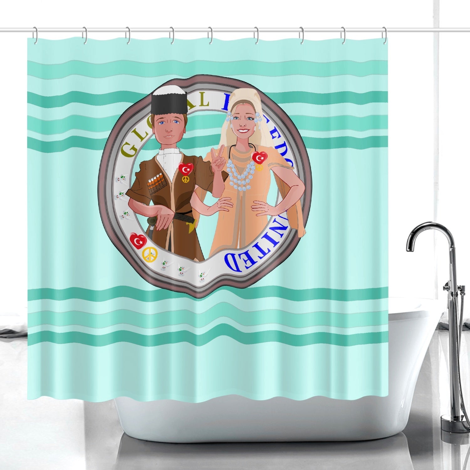 GLOBAL FREEDOM UNITED© Couple Turkey Light Green - Quick-drying Shower Curtain