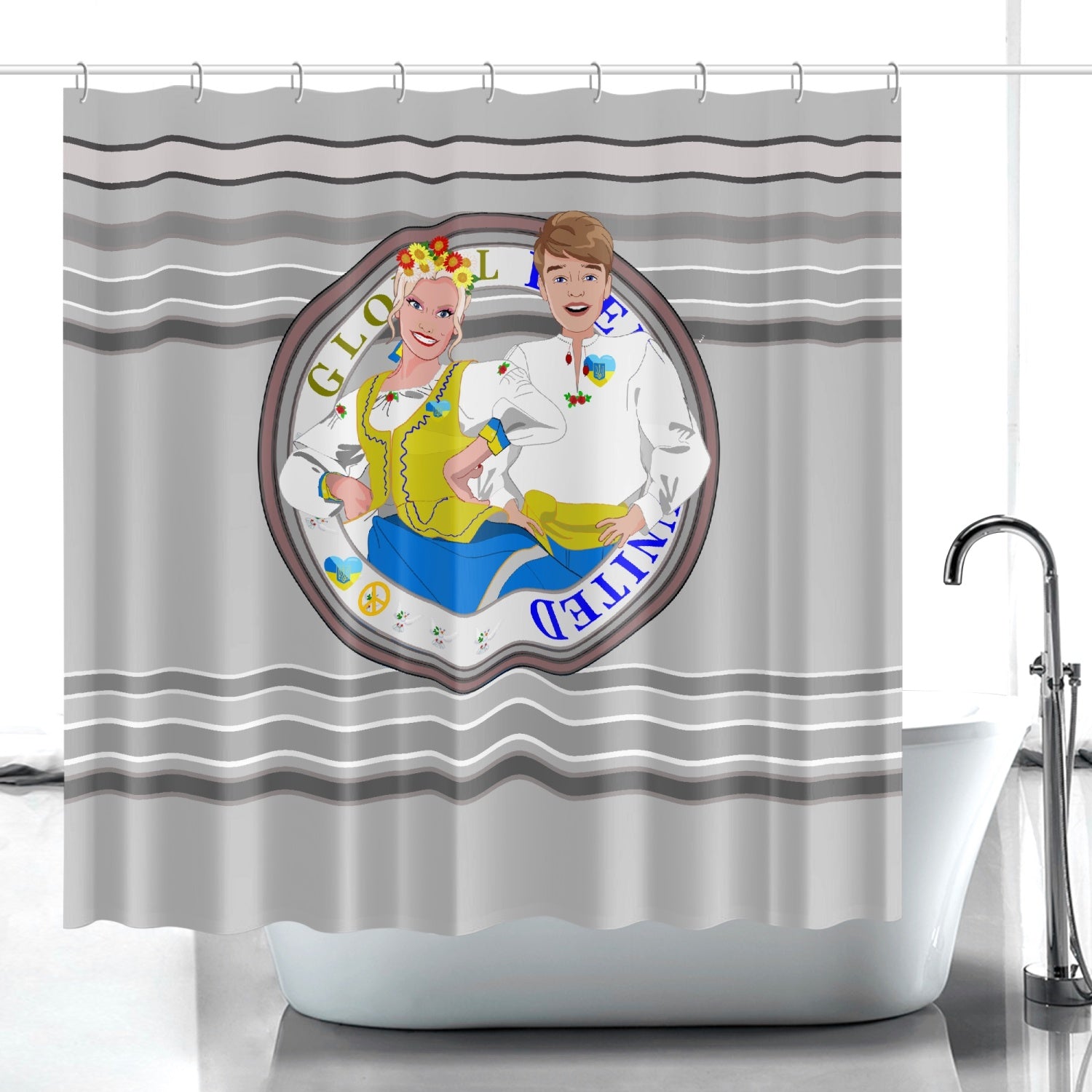 GLOBAL FREEDOM UNITED© Couple Ukrain Grey - Quick-drying Shower Curtain