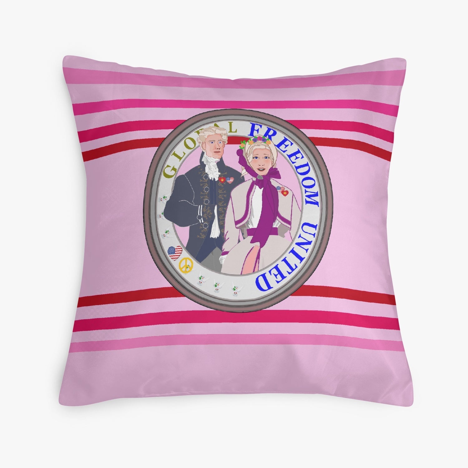 GLOBAL FREEDOM UNITED© Couple USA Georg Washington Pink 1 - Square Pillow Cover