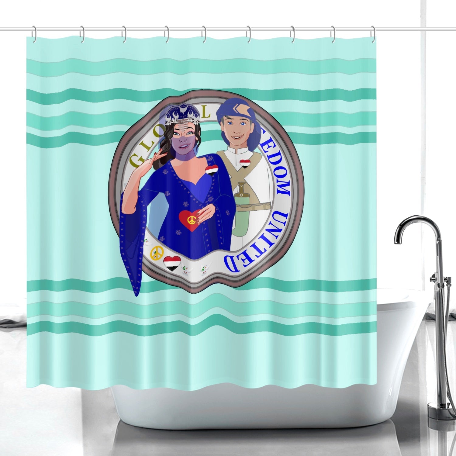 GLOBAL FREEDOM UNITED© Couple Yemen Light Green - Quick-drying Shower Curtain