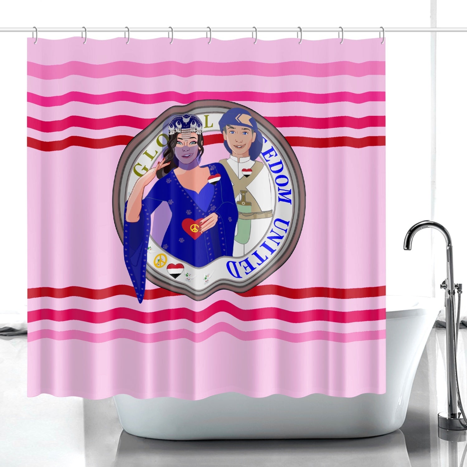 GLOBAL FREEDOM UNITED© Couple Yemen Pink1 - Quick-drying Shower Curtain