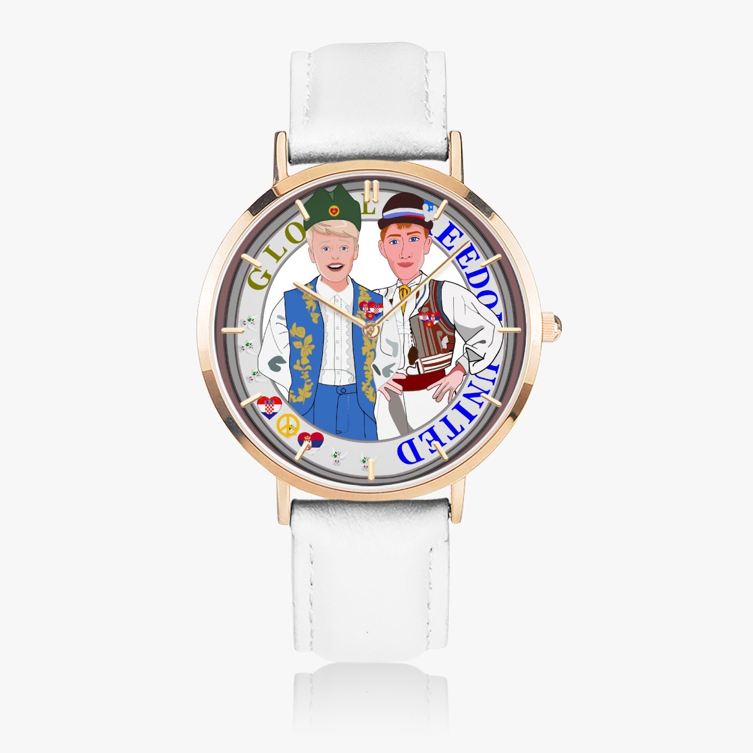 GLOBAL FREEDOM UNITED© Hot Selling Ultra-Thin Leather Strap Quartz Watch (Rose Gold With Indicators) Men Croatia & Serbia