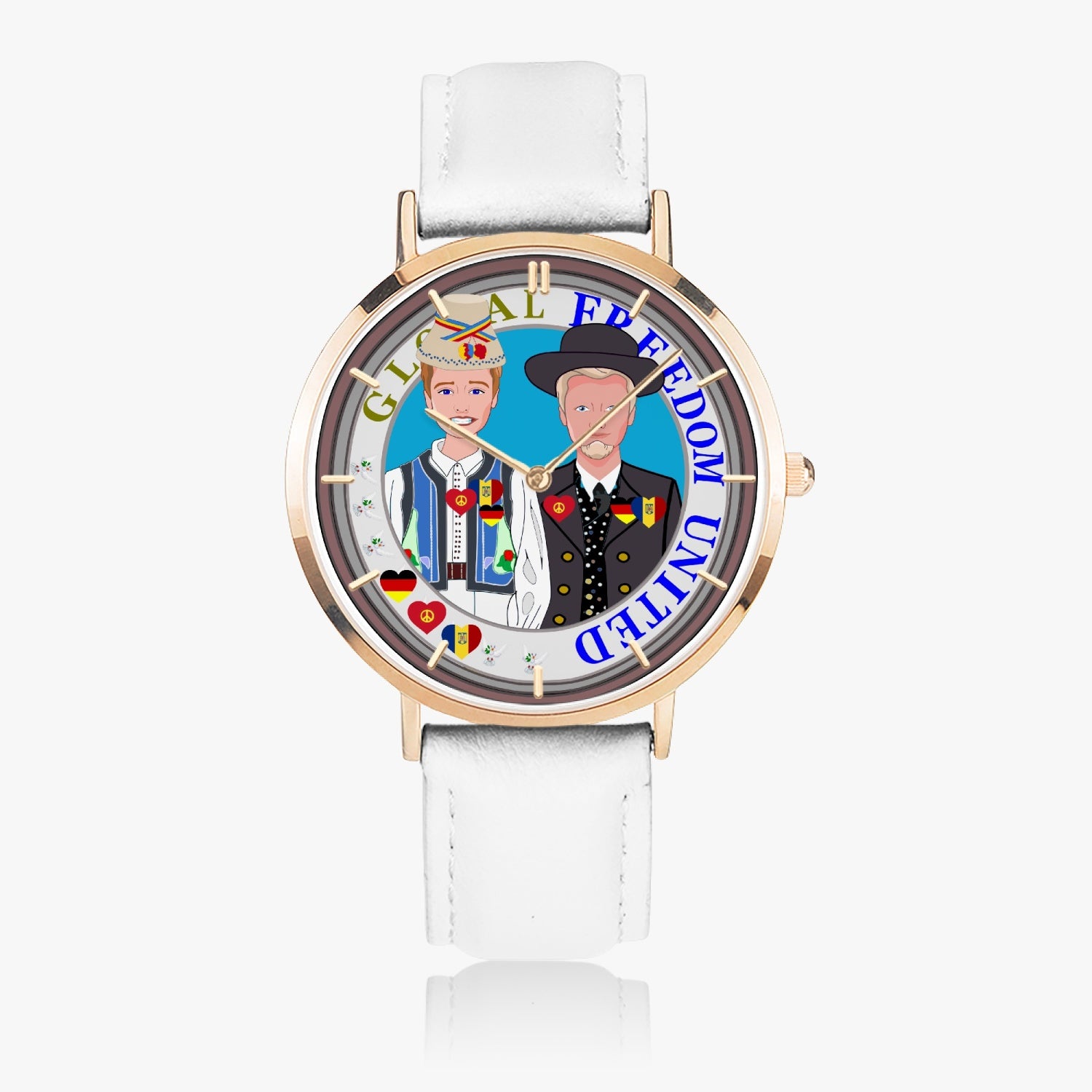 GLOBAL FREEDOM UNITED© Hot Selling Ultra-Thin Leather Strap Quartz Watch (Rose Gold With Indicators) Men Romania & Germany