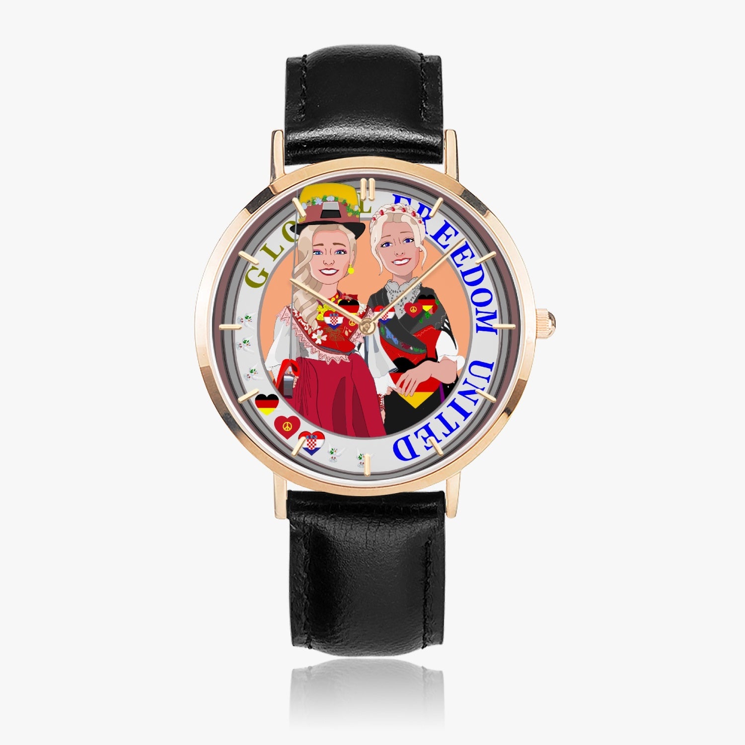 GLOBAL FREEDOM UNITED© Hot Selling Ultra-Thin Leather Strap Quartz Watch (Rose Gold With Indicators) Women Croatia & Germany