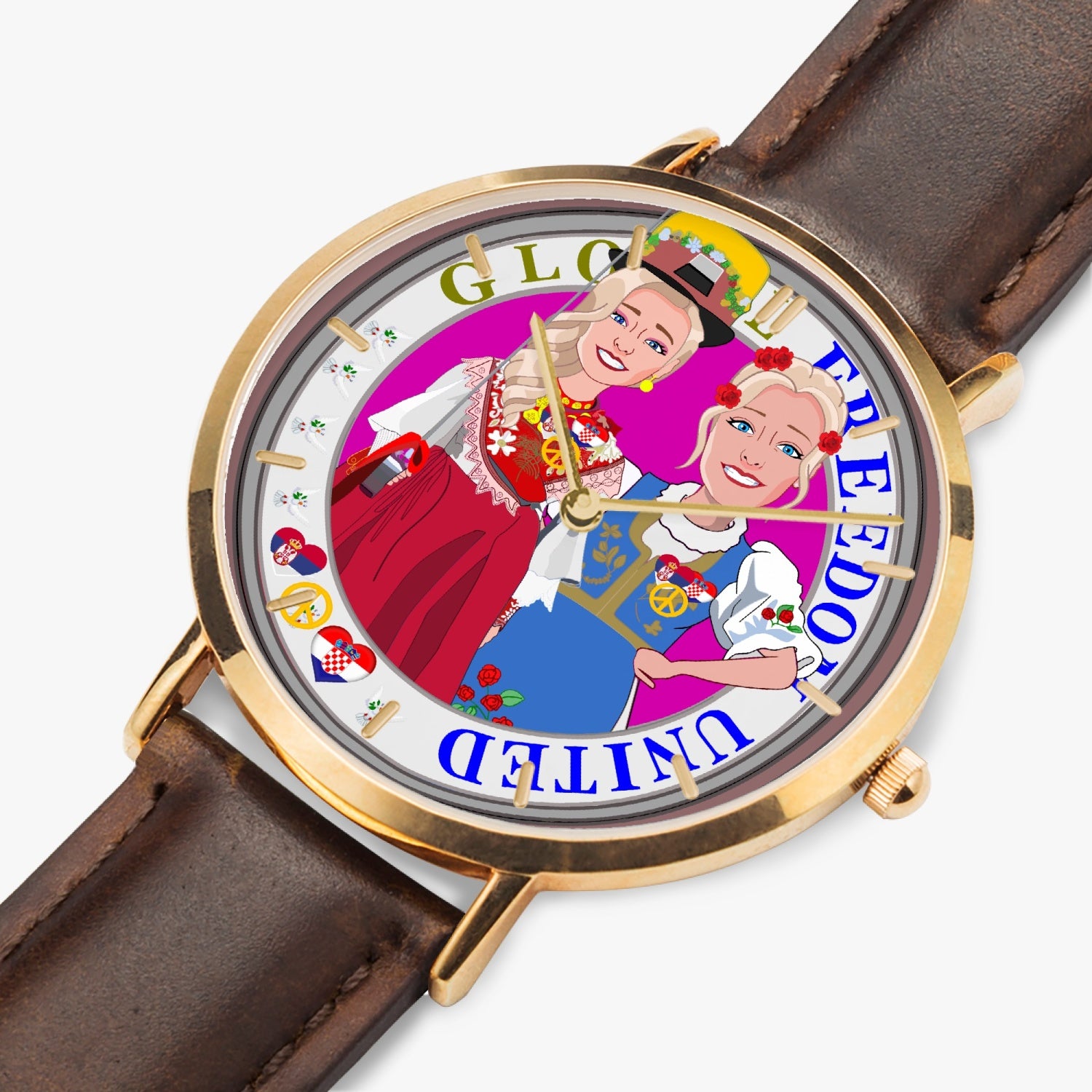 GLOBAL FREEDOM UNITED© Hot Selling Ultra-Thin Leather Strap Quartz Watch (Rose Gold With Indicators) Women Croatia & Serbia V2