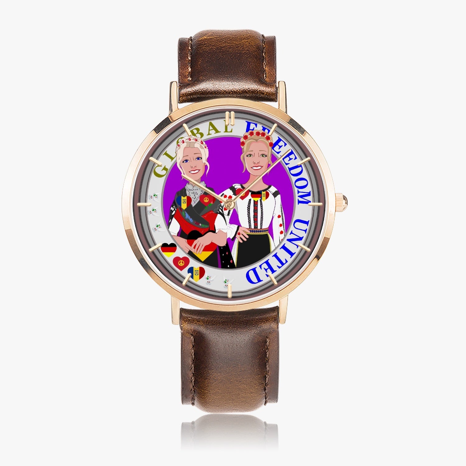 GLOBAL FREEDOM UNITED© Hot Selling Ultra-Thin Leather Strap Quartz Watch (Rose Gold With Indicators) Women Romania & Germany