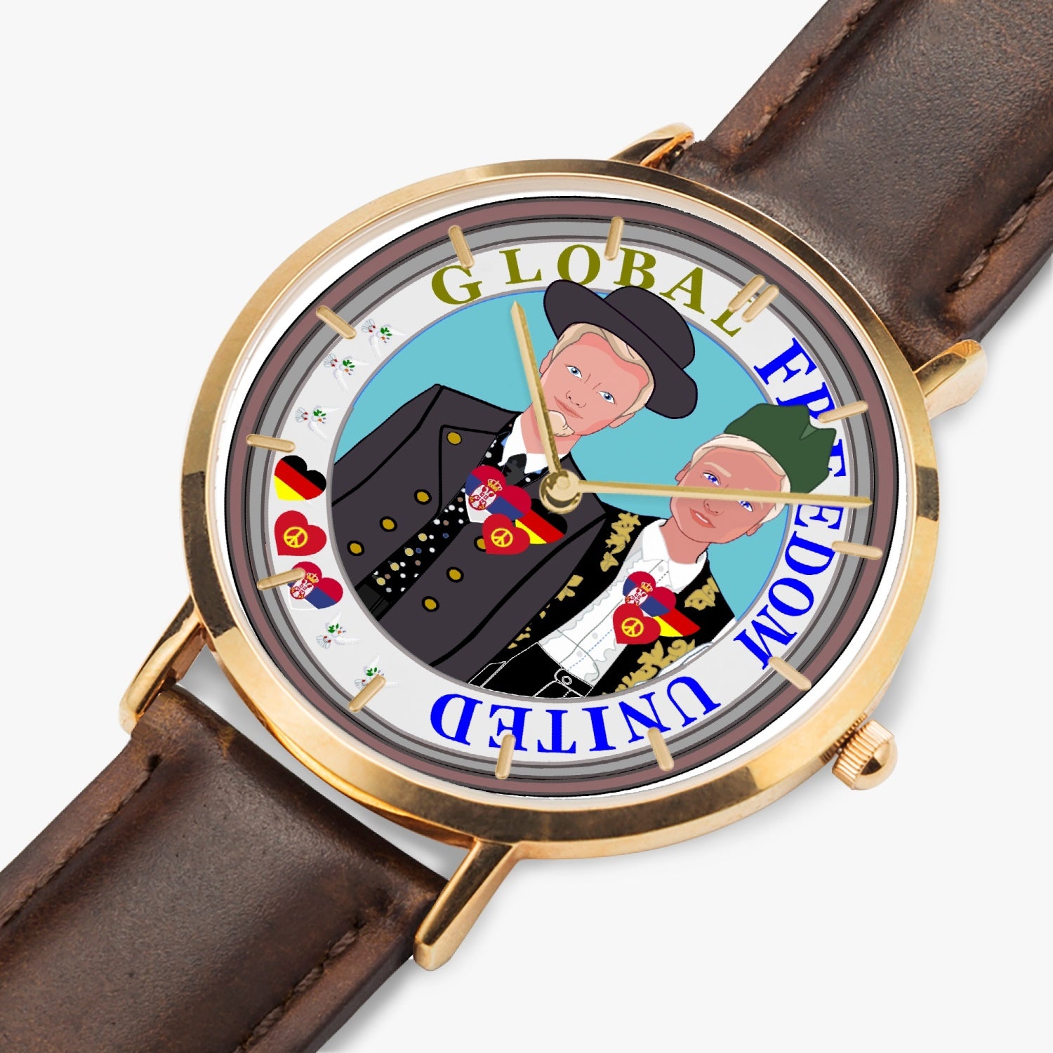 GLOBAL FREEDOM UNITED© Men Serbia & Germany V1Hot Selling Ultra-Thin Leather Strap Quartz Watch (Rose Gold With Indicators)