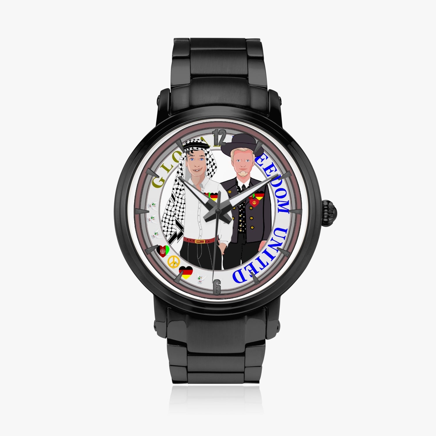 GLOBAL FREEDOM UNITED© New Steel Strap Automatic Watch (With Indicators) Men Afghanistan & Germany