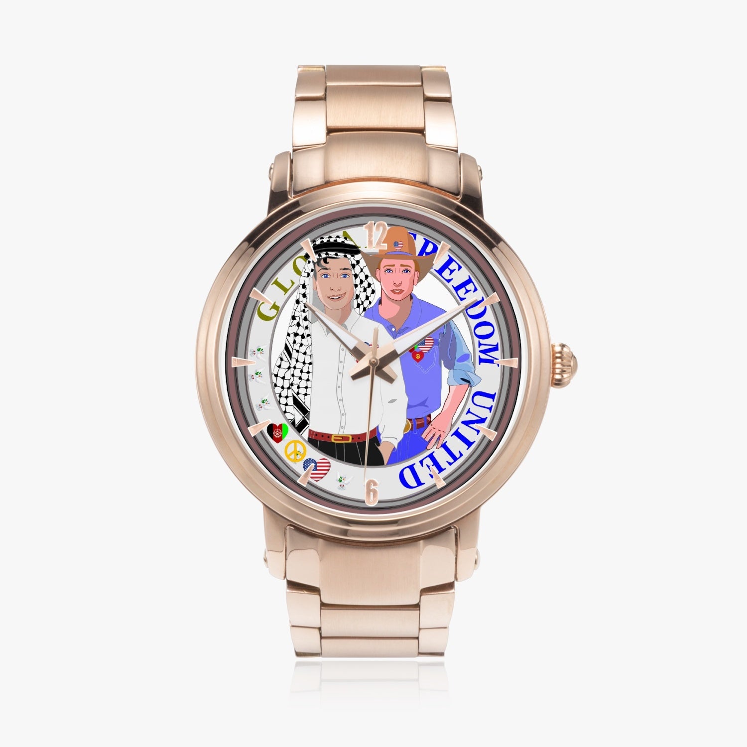 GLOBAL FREEDOM UNITED© New Steel Strap Automatic Watch (With Indicators) Men Afghanistan & USA