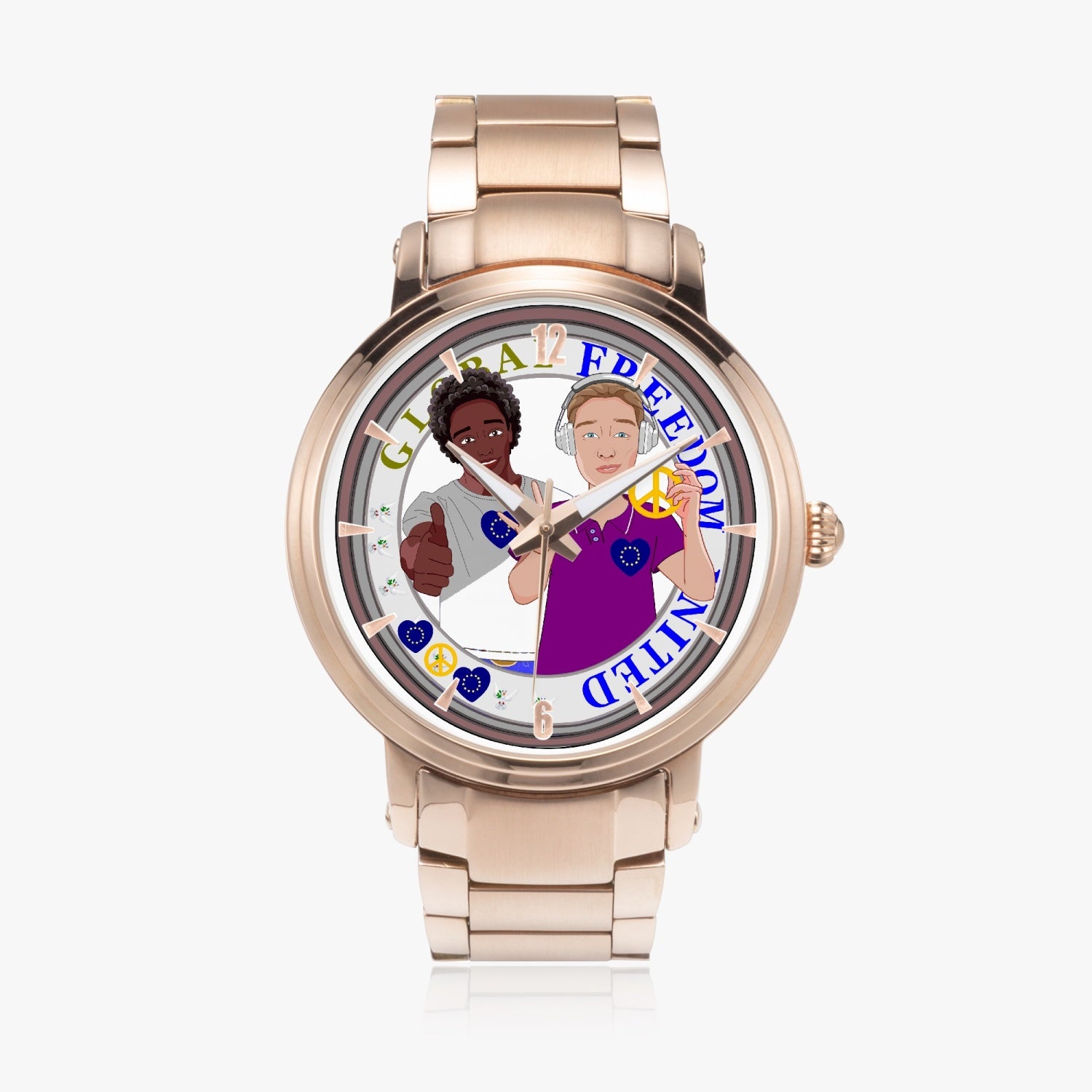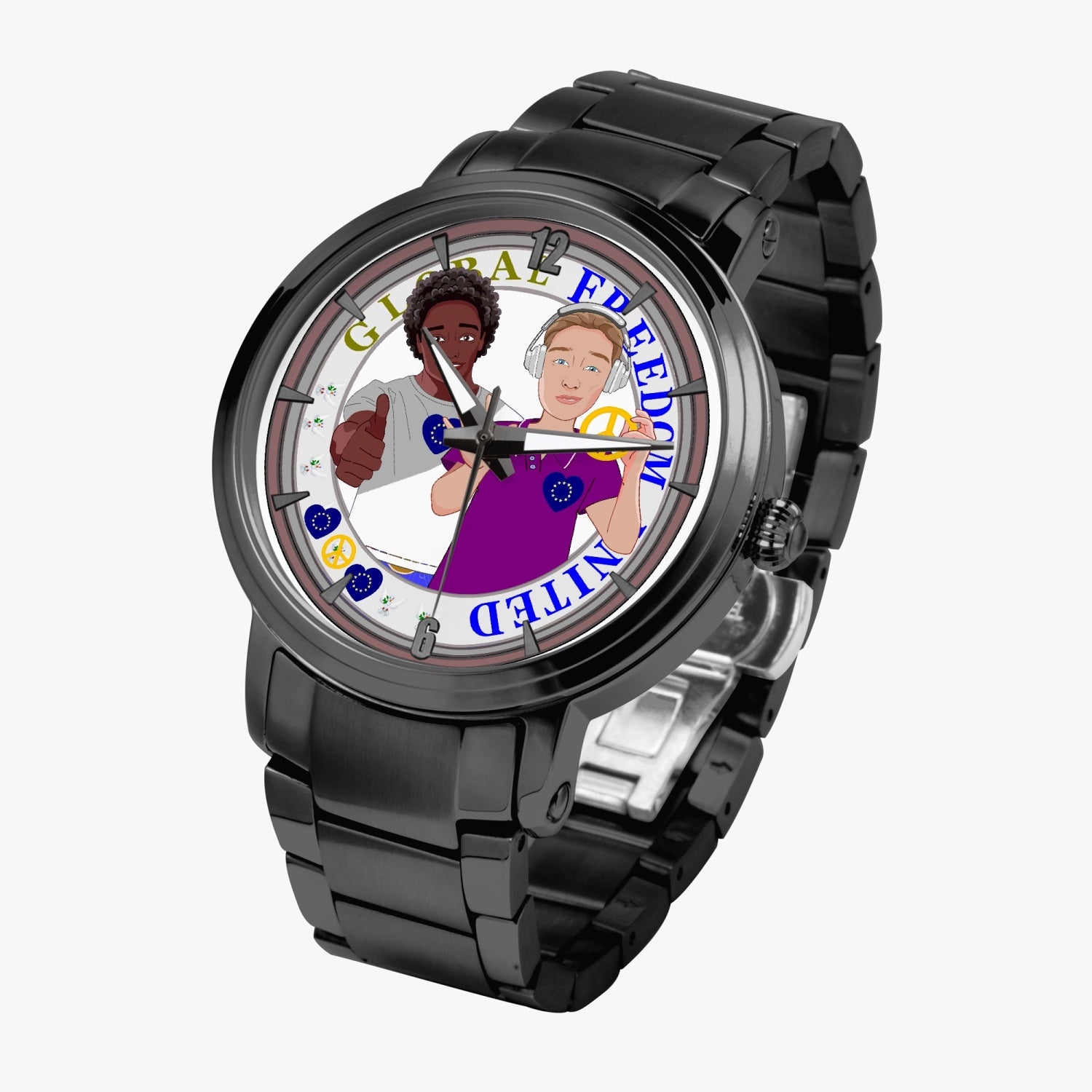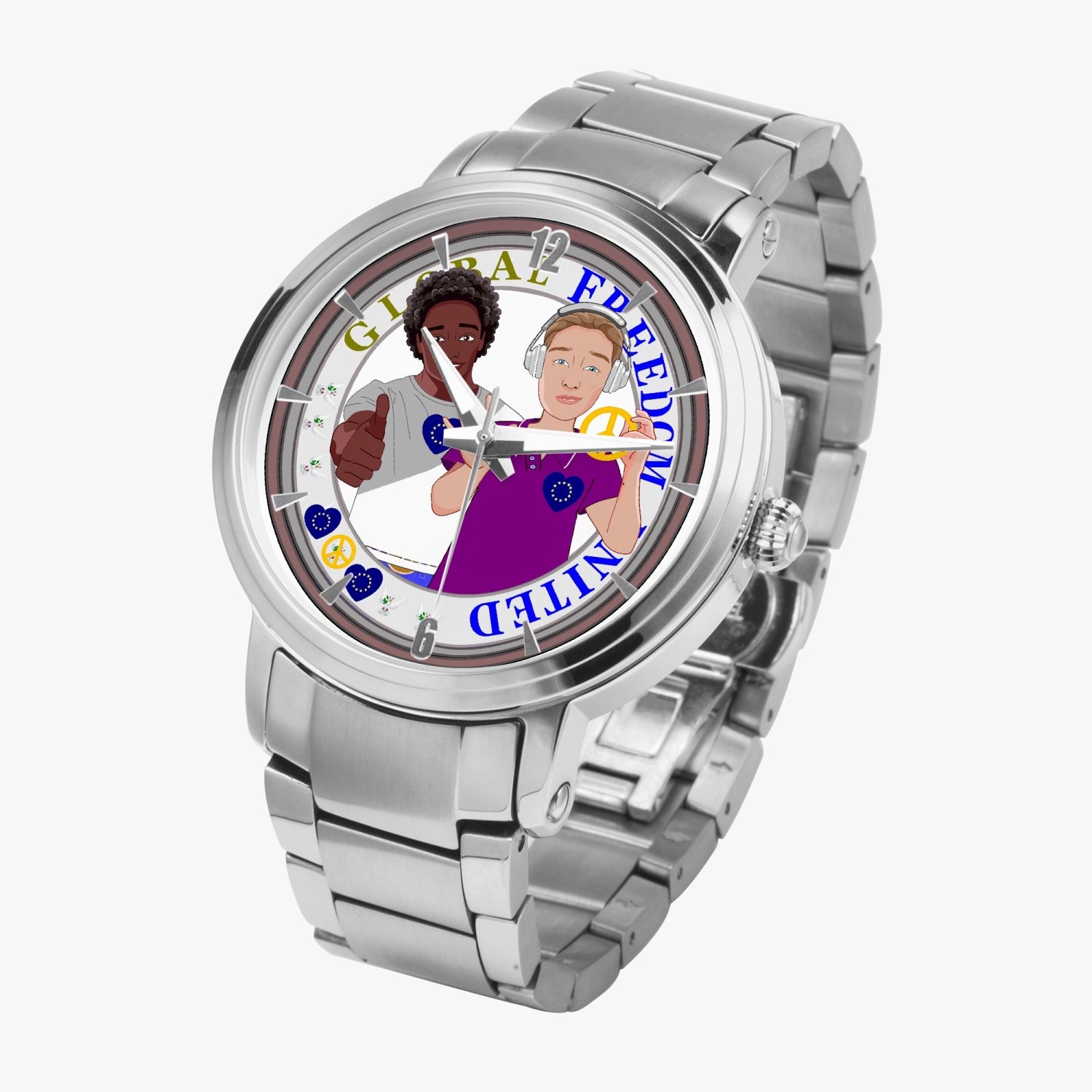GLOBAL FREEDOM UNITED© New Steel Strap Automatic Watch (With Indicators) Men ANTI FASCISM & RACISM EUROPE