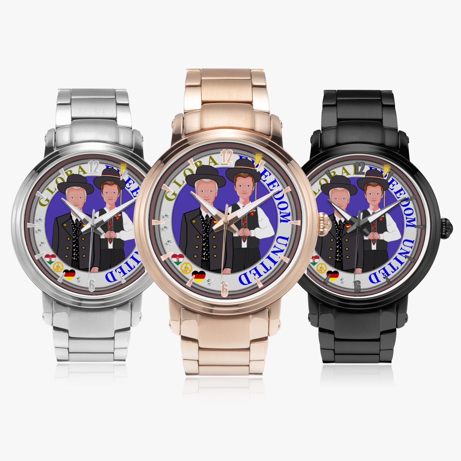 GLOBAL FREEDOM UNITED© New Steel Strap Automatic Watch (With Indicators) Men Germany & Hungary