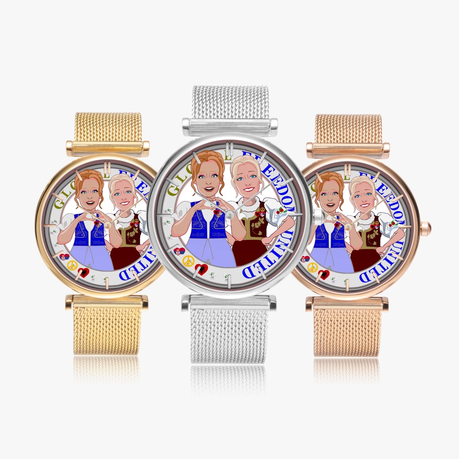 GLOBAL FREEDOM UNITED© New Stylish Ultra-Thin Quartz Watch (With Indicators) Women Albania & Serbia