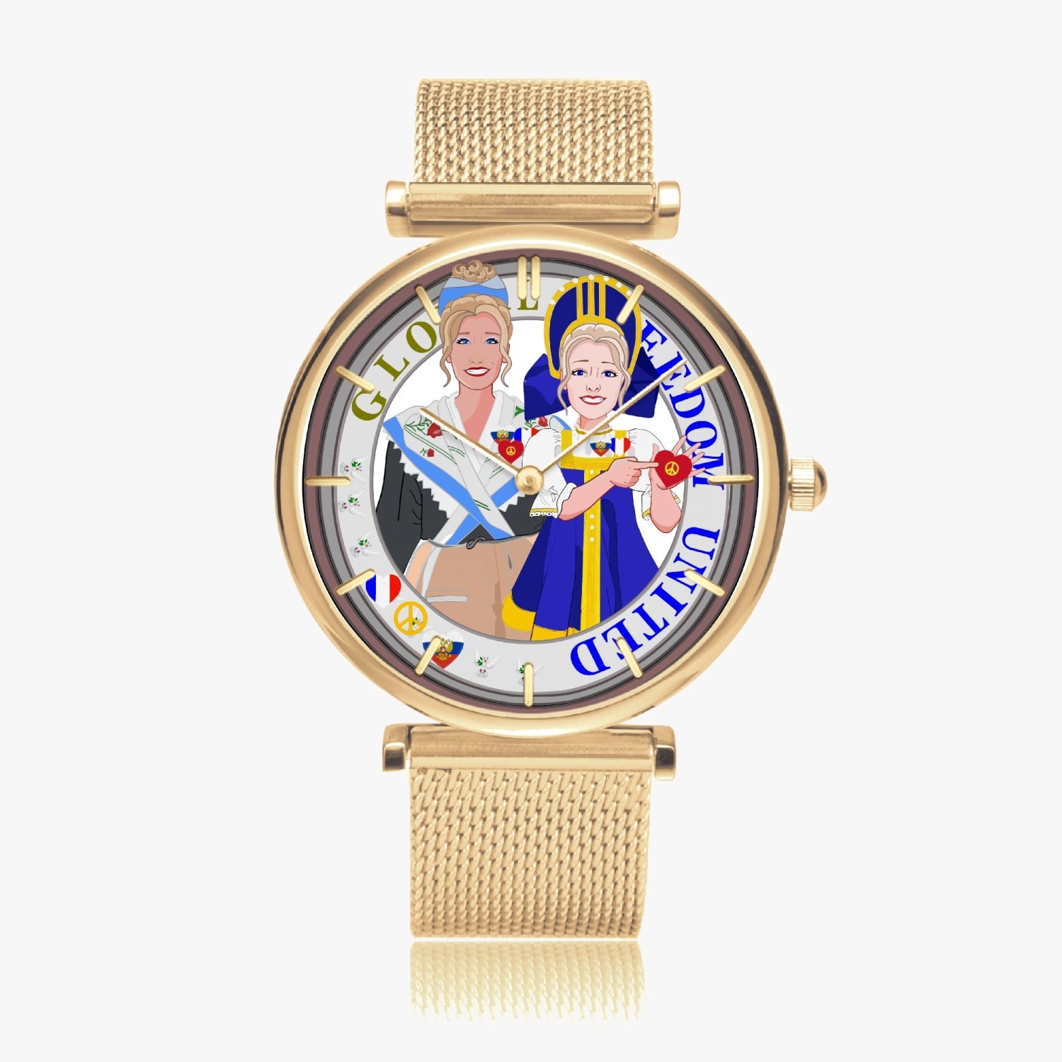 GLOBAL FREEDOM UNITED© New Stylish Ultra-Thin Quartz Watch (With Indicators) Women French & Russia V2