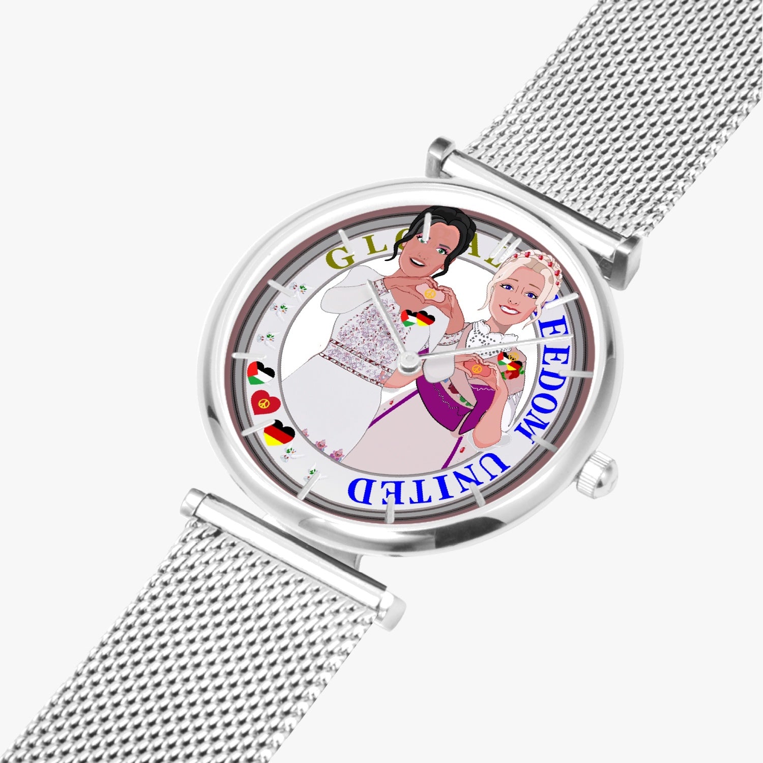 GLOBAL FREEDOM UNITED© New Stylish Ultra-Thin Quartz Watch (With Indicators) Women Palestina & Germany