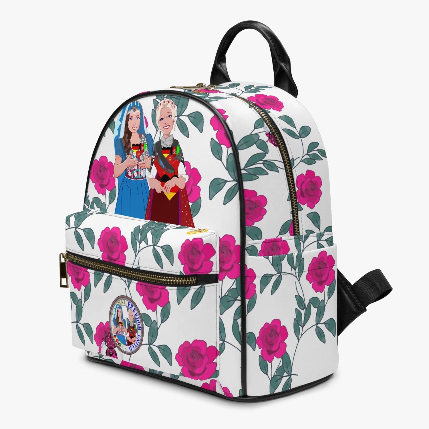 GLOBAL FREEDOM UNITED© Women Afghanistan & Germany Pink Roses - All Over Printed PU Backpack