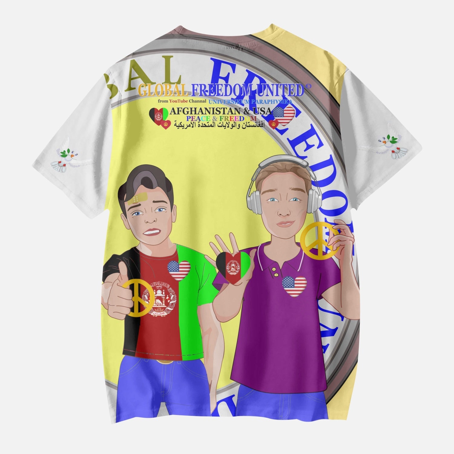 GLOBAL FREEDOM UNITED© Boy AFGHANISTAN & USA YELLOW AOP Kids' Short T-Shirts