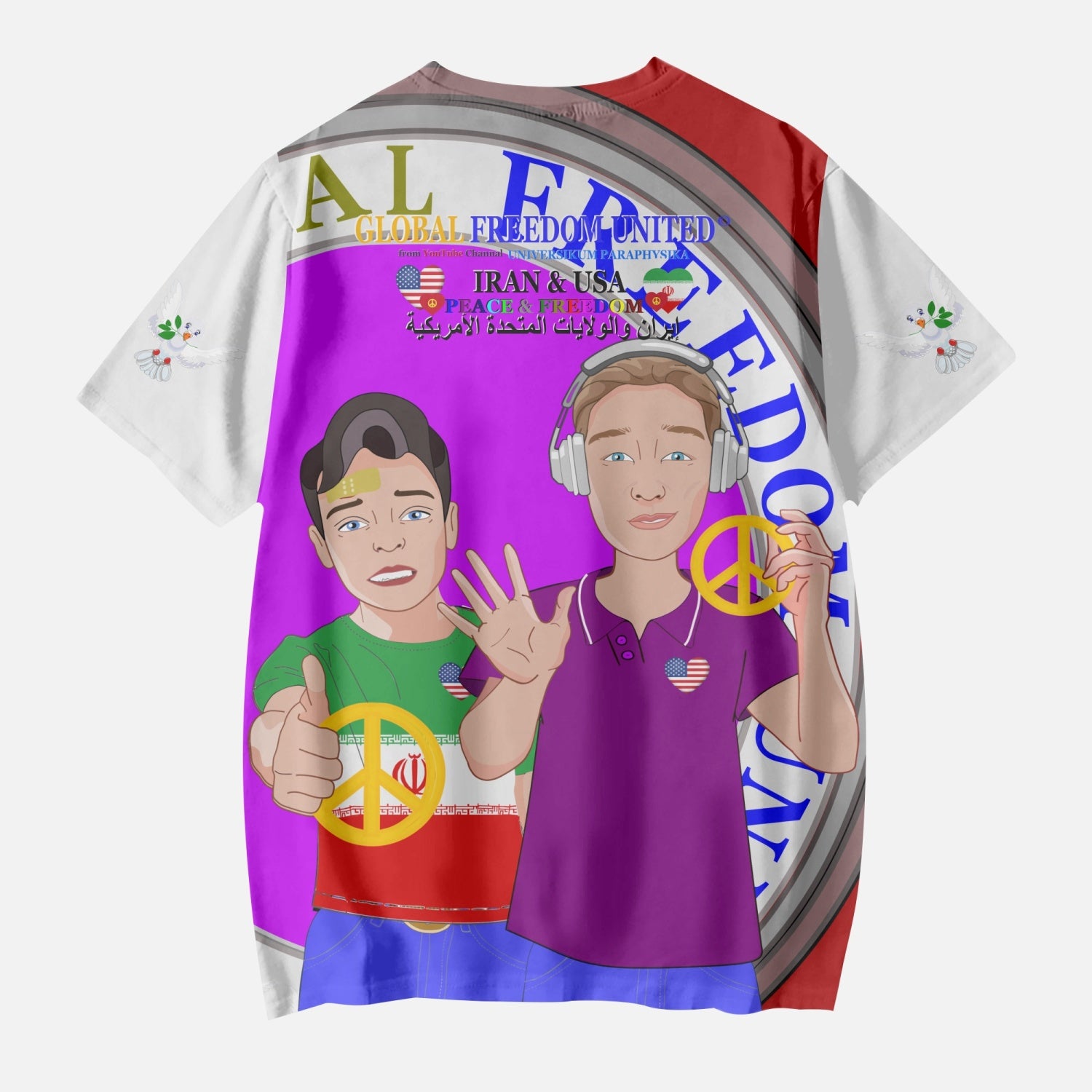GLOBAL FREEDOM UNITED BOYS IRAN & USA OLD PEACE RED AOP Kids' Short T-Shirts